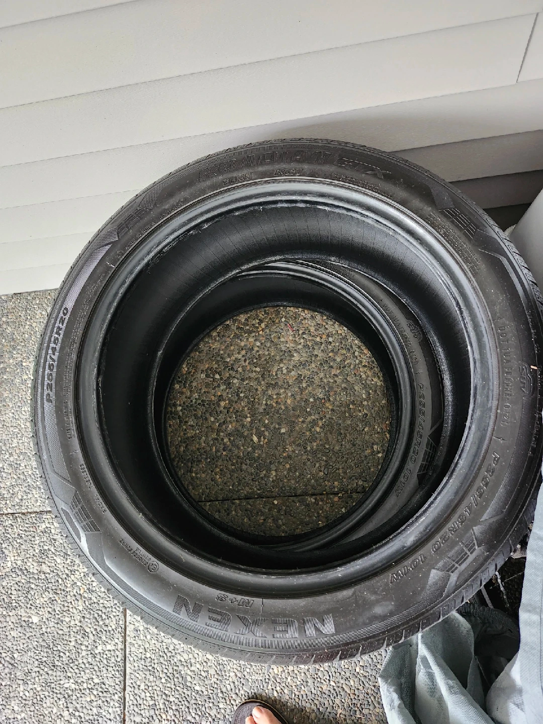 15Selling a set of two Nexen tires. The size is P255/45R20. They are marked M+S. Mitsubishi outlander standard tires with 20in. rims size. 70% tread depth