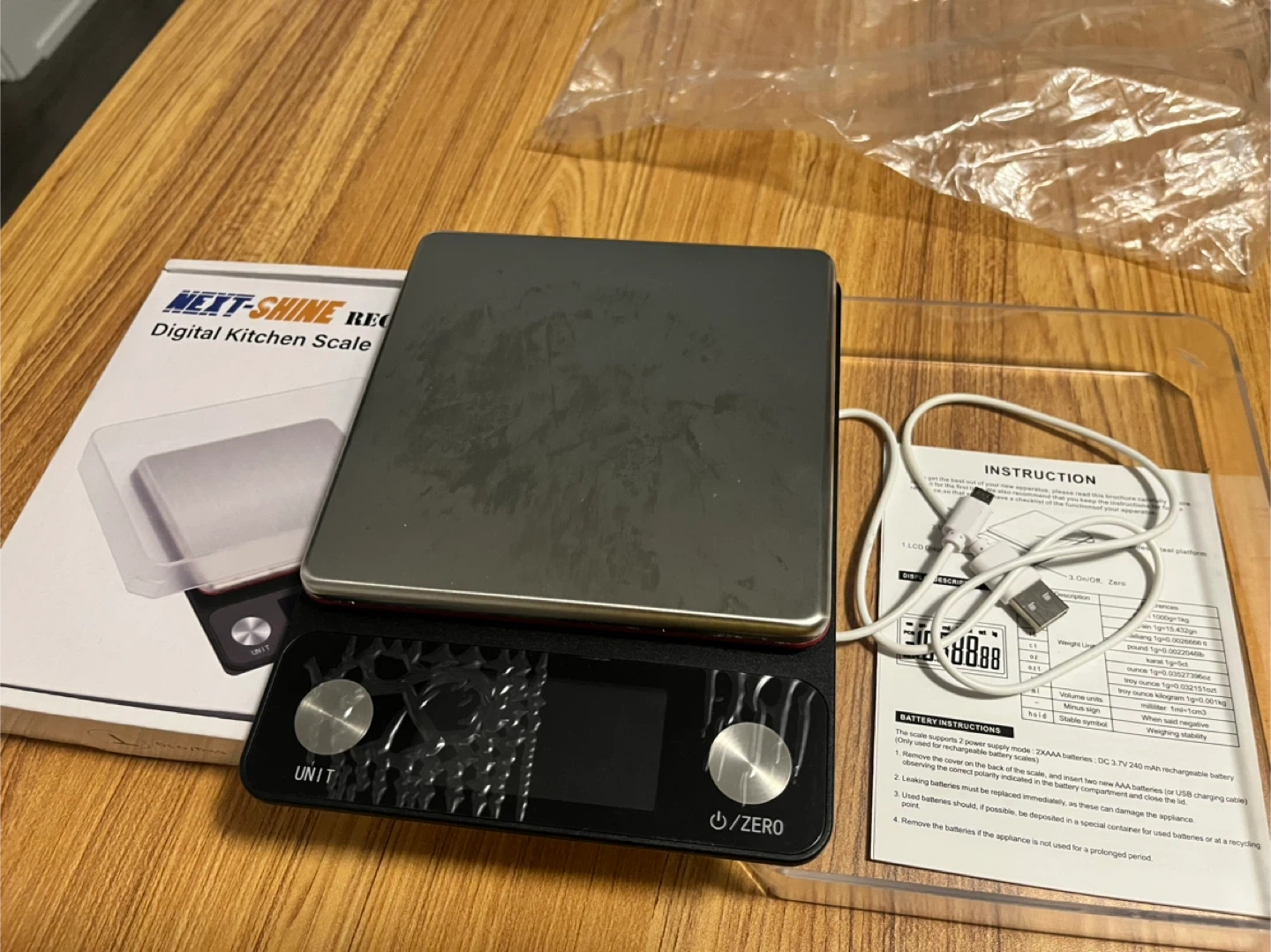 181********Moving-out Sale****** Pick-up is available only between Oct 26 and Oct 27 This high-quality NEXT-SHINE Digital Kitchen Scale is practically new. It has only been used a few times and was always kept pristine—I used it exclusively with a plastic bag wrap to ensure no contact with food or residue. This scale is perfect for bakers, coffee fanatics, or anyone needing precise measurements. ⚠️ IMPORTANT NOTE ON USE: This scale sometimes experiences a unique operational issue: The display may reset (show '0') a few seconds after the item is placed and measured. To ensure accurate measurement, you must read and record the weight quickly after placing the item on the platform. The scale works perfectly for quick measurements but is not suitable for slow or prolonged measurements (like slow pour-overs or incremental addition). Also it should be connected to power to use, I am not sure if the battery works. From Amazon: https://a.co/d/hdJ1ikb