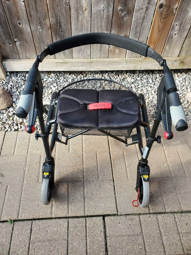 15This is a used Nexus Walker Assist with Basket, perfect for providing support and mobility. It features a convenient basket for carrying items and is in good condition, ready to assist with your daily activities. * Brand: Nexus * Type: Walker * Features: Basket, seat, adjustable height