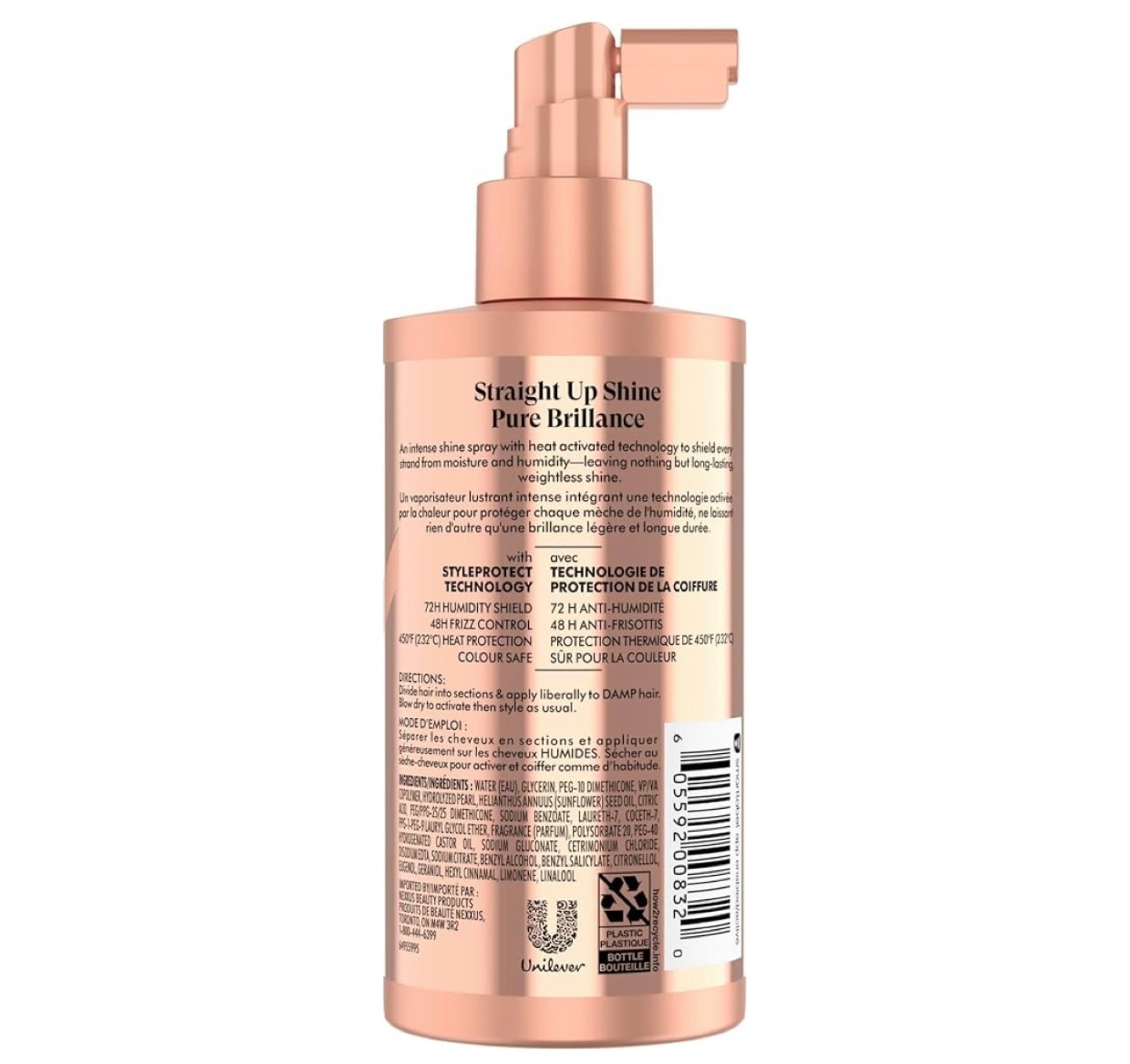 104This is a NEXXUS Epic Shine Brillance Sublime Spray. It's an anti-humidity spray that leaves your hair feeling weightless and gives it a long-lasting shine. It comes in a 236 mL bottle