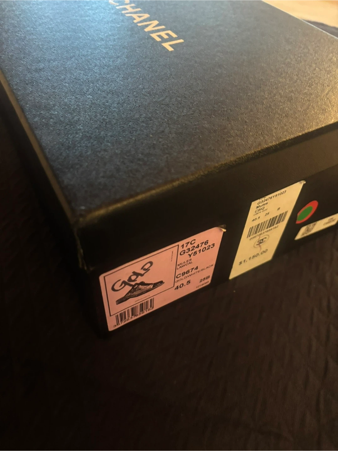 Chanel Gold & Black Mule Shoes