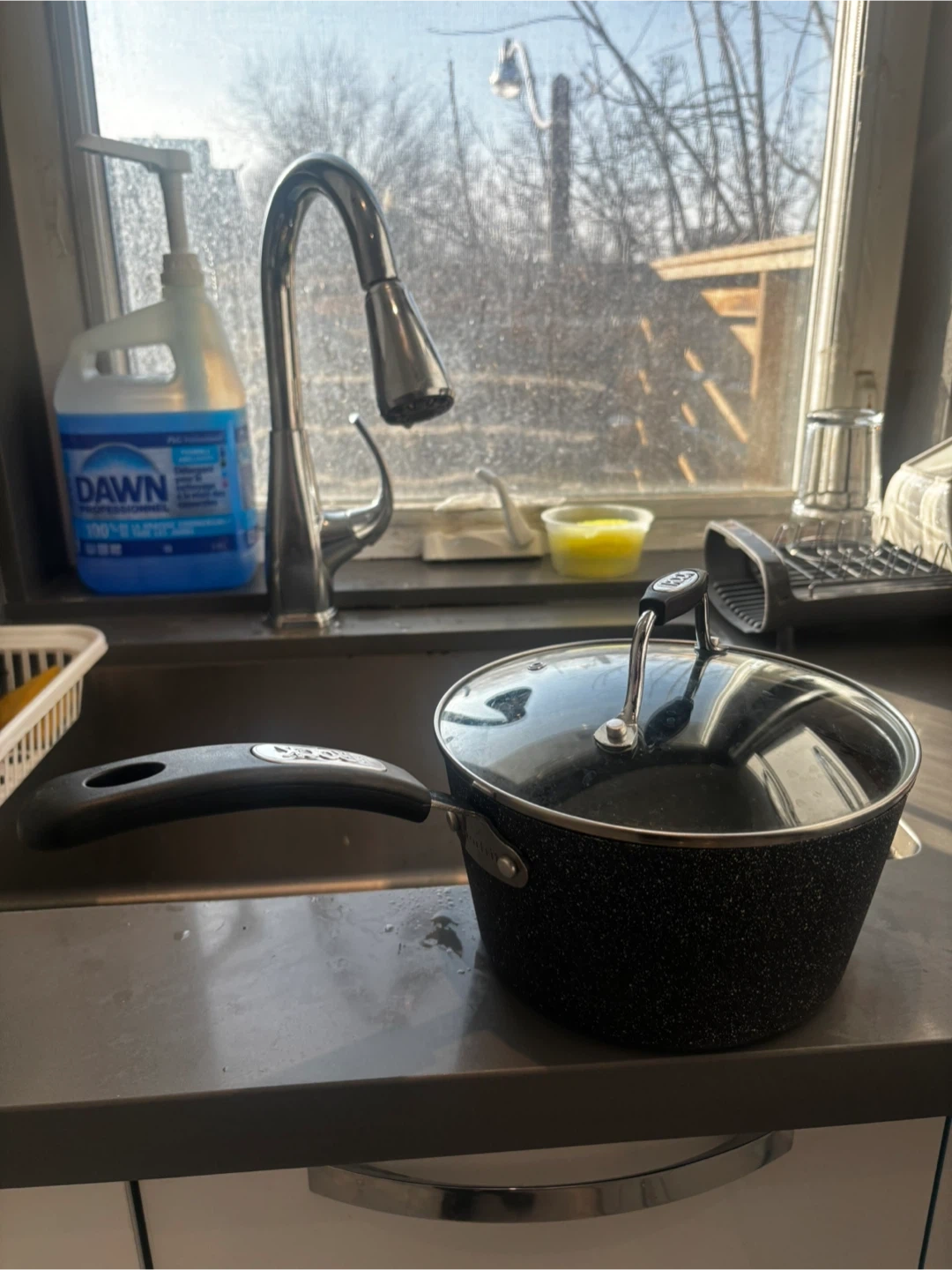 This 3-quart Cuisinart saucepan has a non-stick interior for easy cooking and cleanup. It comes with a tempered glass lid. Durable construction ensures even heating.