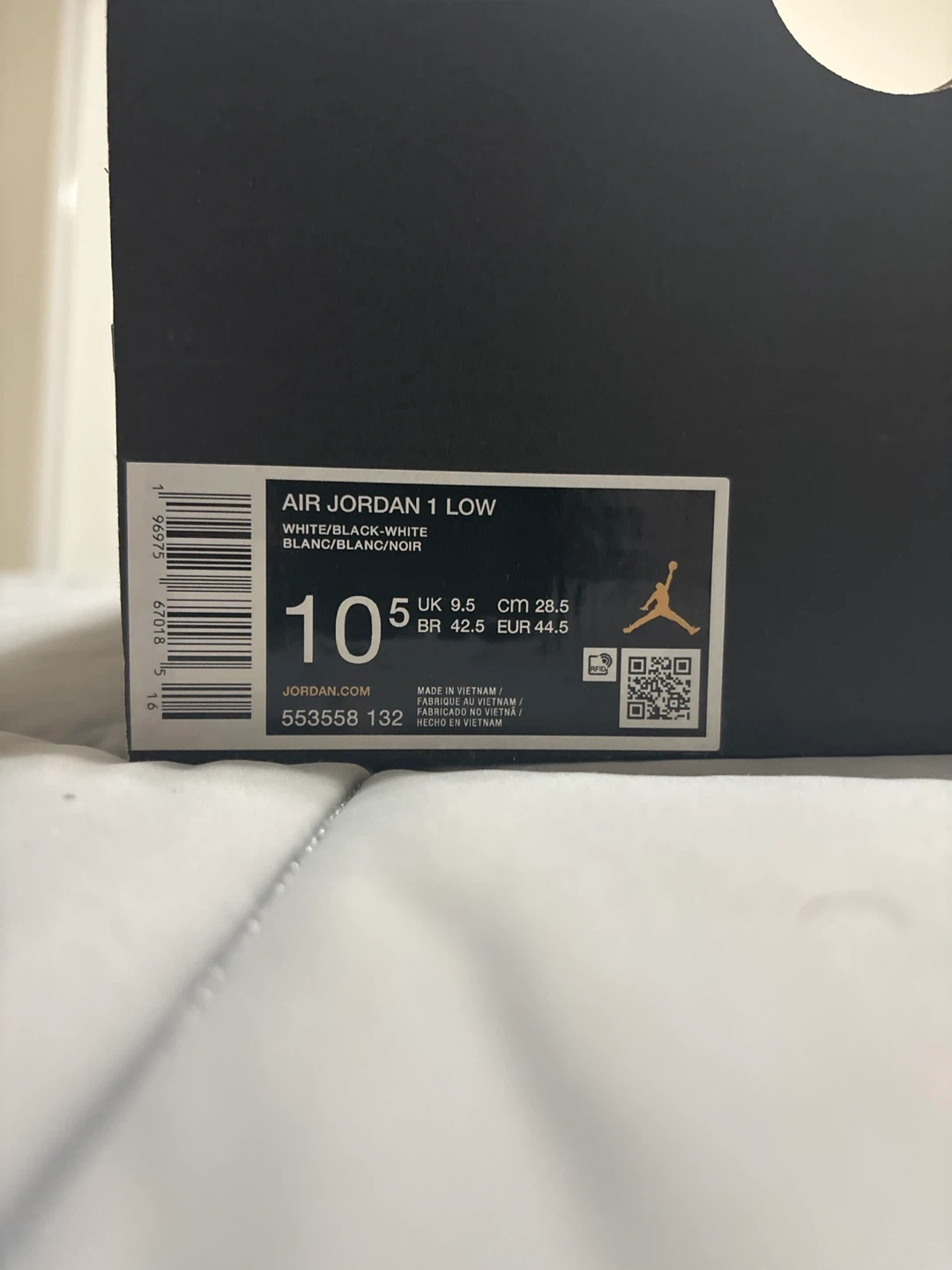 Air Jordan 1 Low White/Black Size 10.5