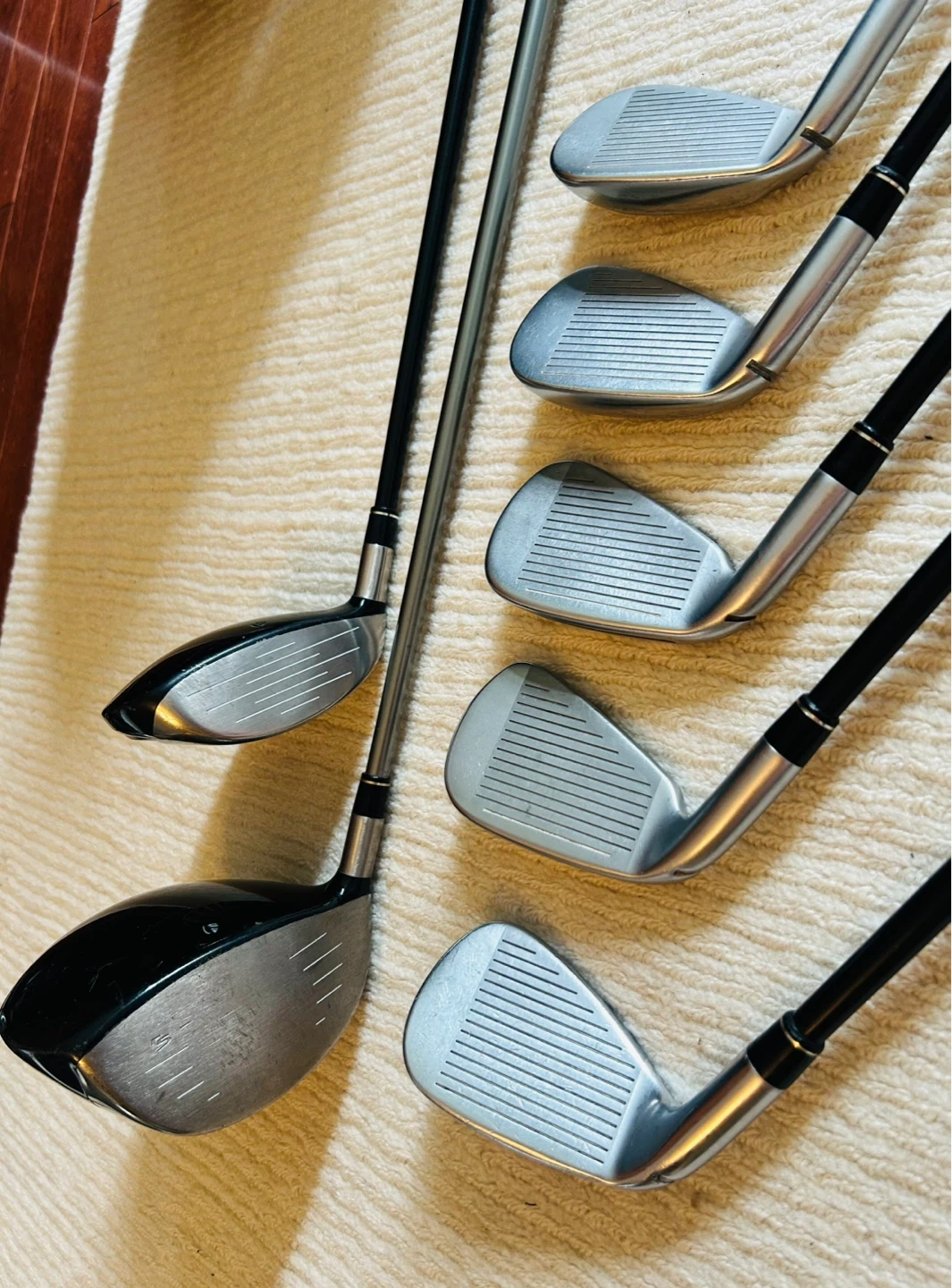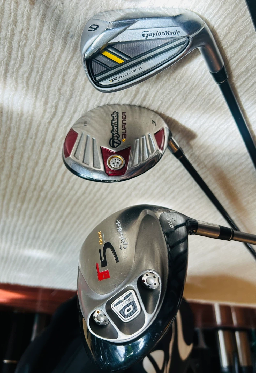 Wood 3: TaylorMade Burner, Graphite Shaft, Superfast, S-Flex, 50g.