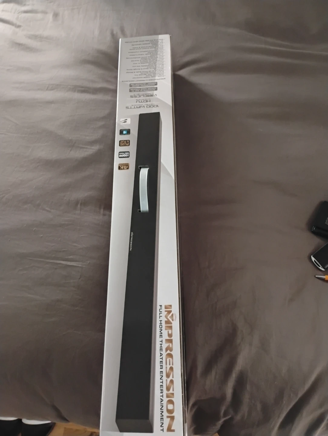 Impression soundbar for full home theater entertainment. Supports 4K. 1000 Watts total power. Includes original packaging.