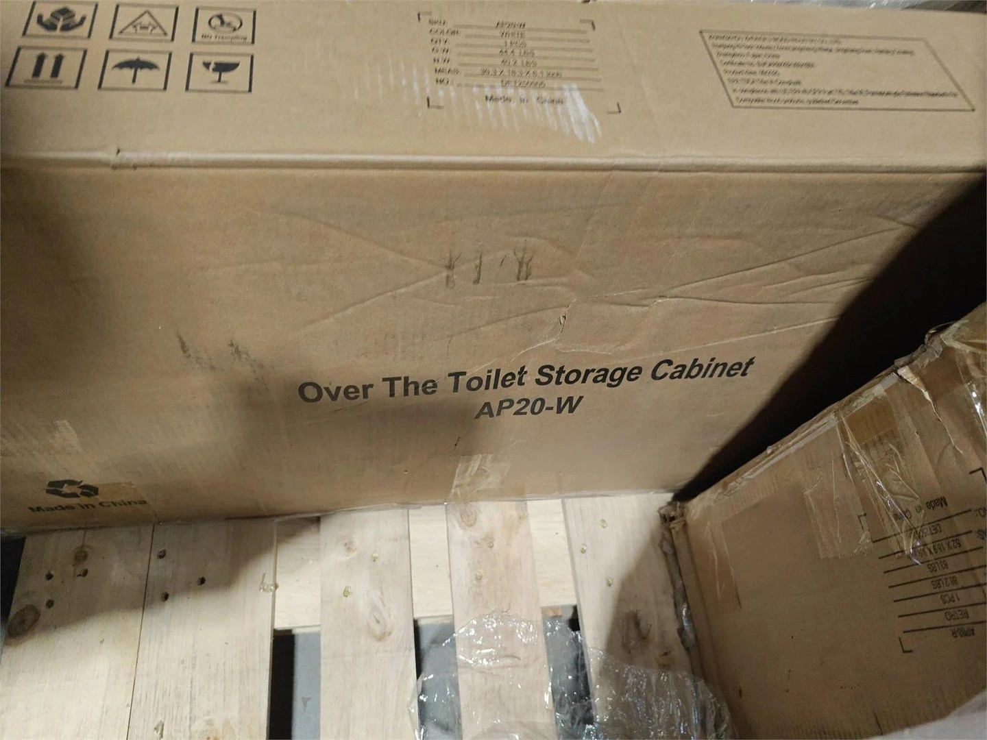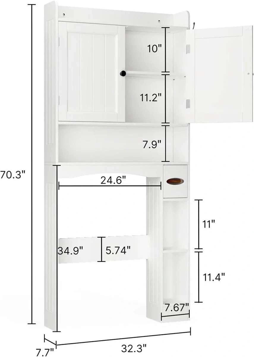 This over-the-toilet storage cabinet is a great way to maximize space in your bathroom. It's white and in great condition. The dimensions are 70.3" x 32.3" x 7.7". It provides ample storage space to keep your items organized.