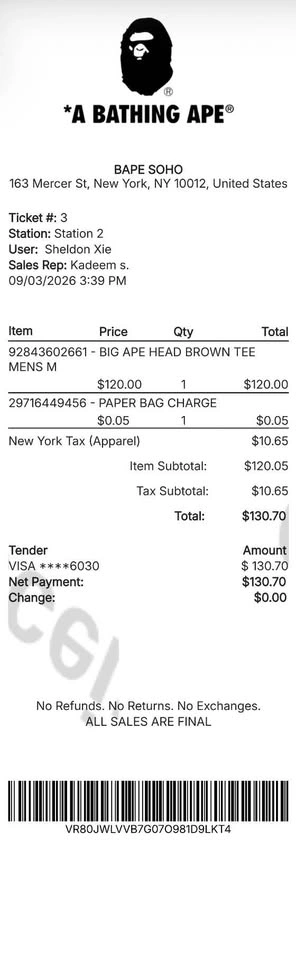 Buy & SellA Bathing Ape Big Ape Head Brown Tee - Mens MediumA Bathing Ape Big Ape Head Brown Tee - Mens Medium$90BAPE t-shirt, size M, with brown and yellow ape head graphic. New, in original packaging with tags.WHERE TO MEETCheck LocationView MapSELLERSheldon XieSunshine Hills231 review0 chats·0 favorites·8 viewsSEND CHAT TO SELLERHi Sheldon Xie! I’m interested in your listing.Hi Sheldon Xie! I’m interested in your listing.Get the Karrot app to chatSign In to chat