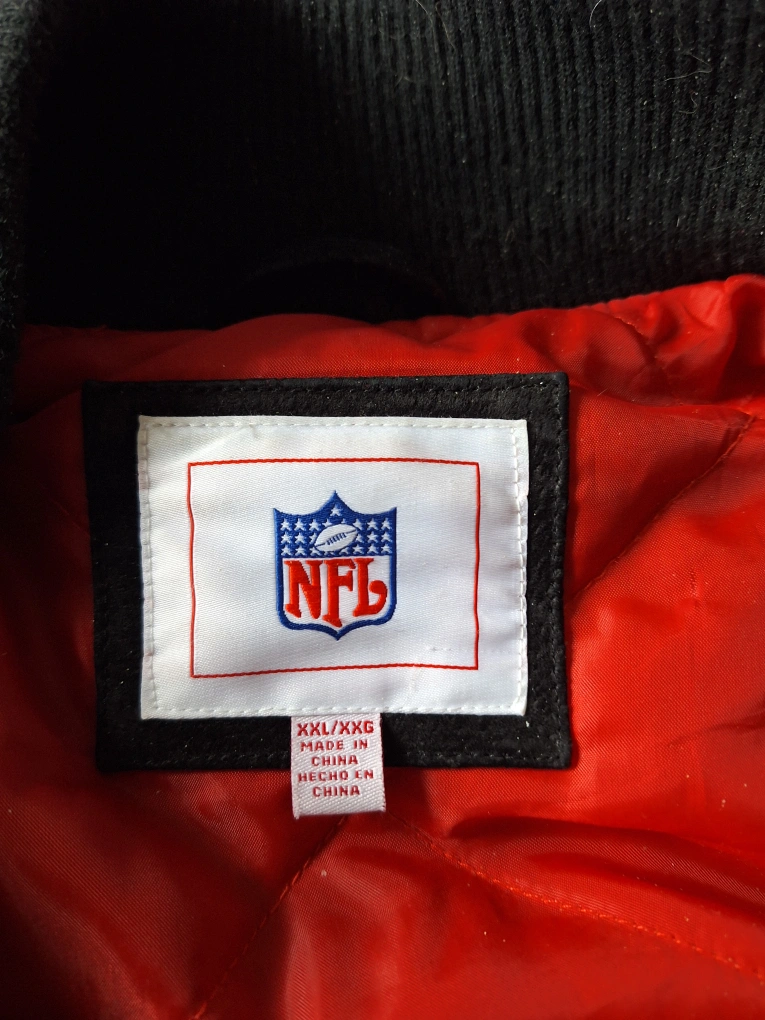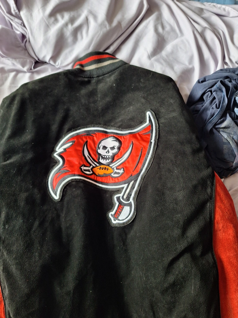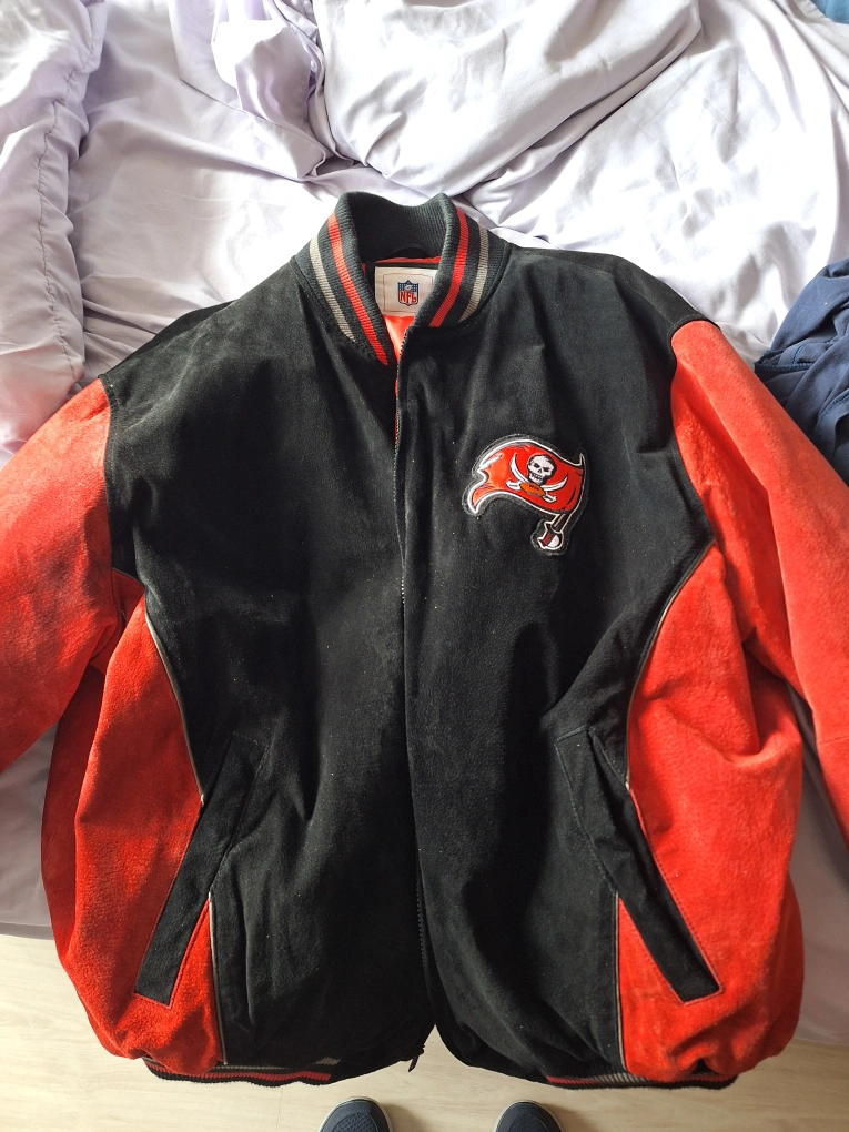 10Selling a gently used NFL Tampa Bay Buccaneers jacket. It's a size XXL and features the team's logo. The jacket is black and red. Perfect for any Bucs fan!