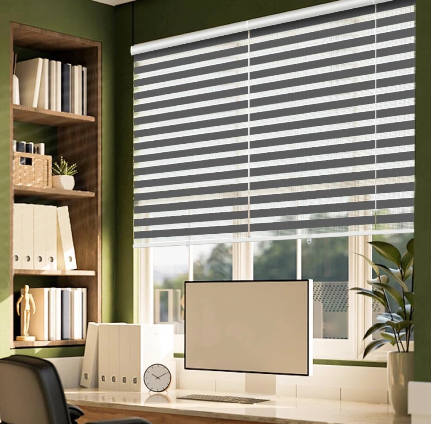 NEW Cordless Zebra Blind, 54” W x 72” H, Dark Grey