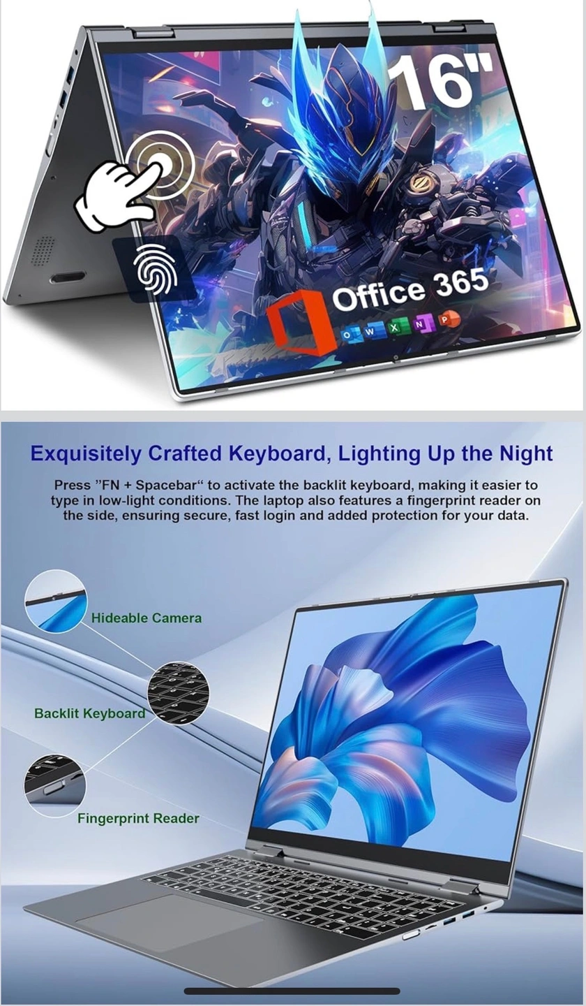 16" FHD Touch 2-in-1 Laptop/Tablet 16GBRAM/640GB 360°Fingerprint