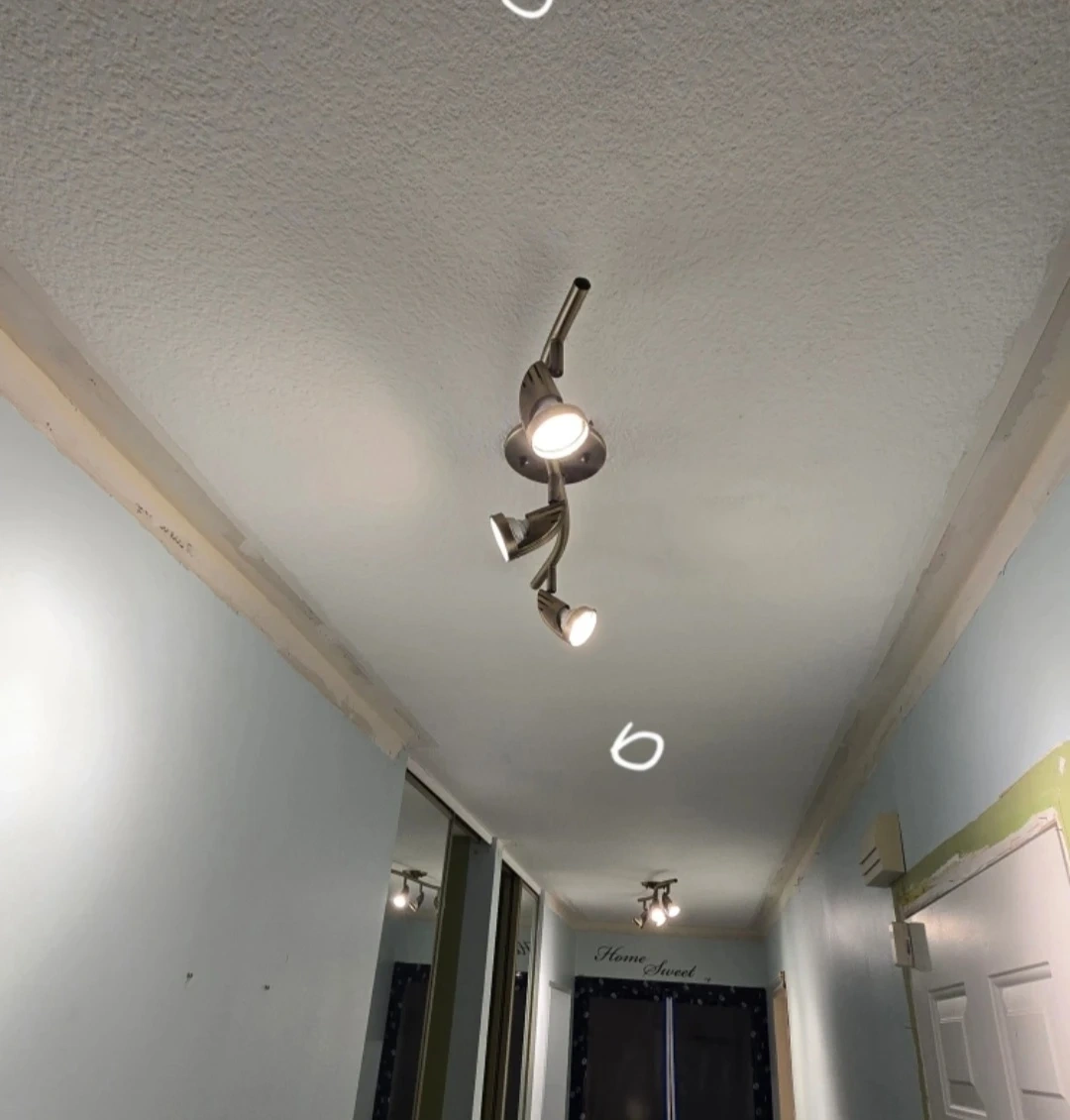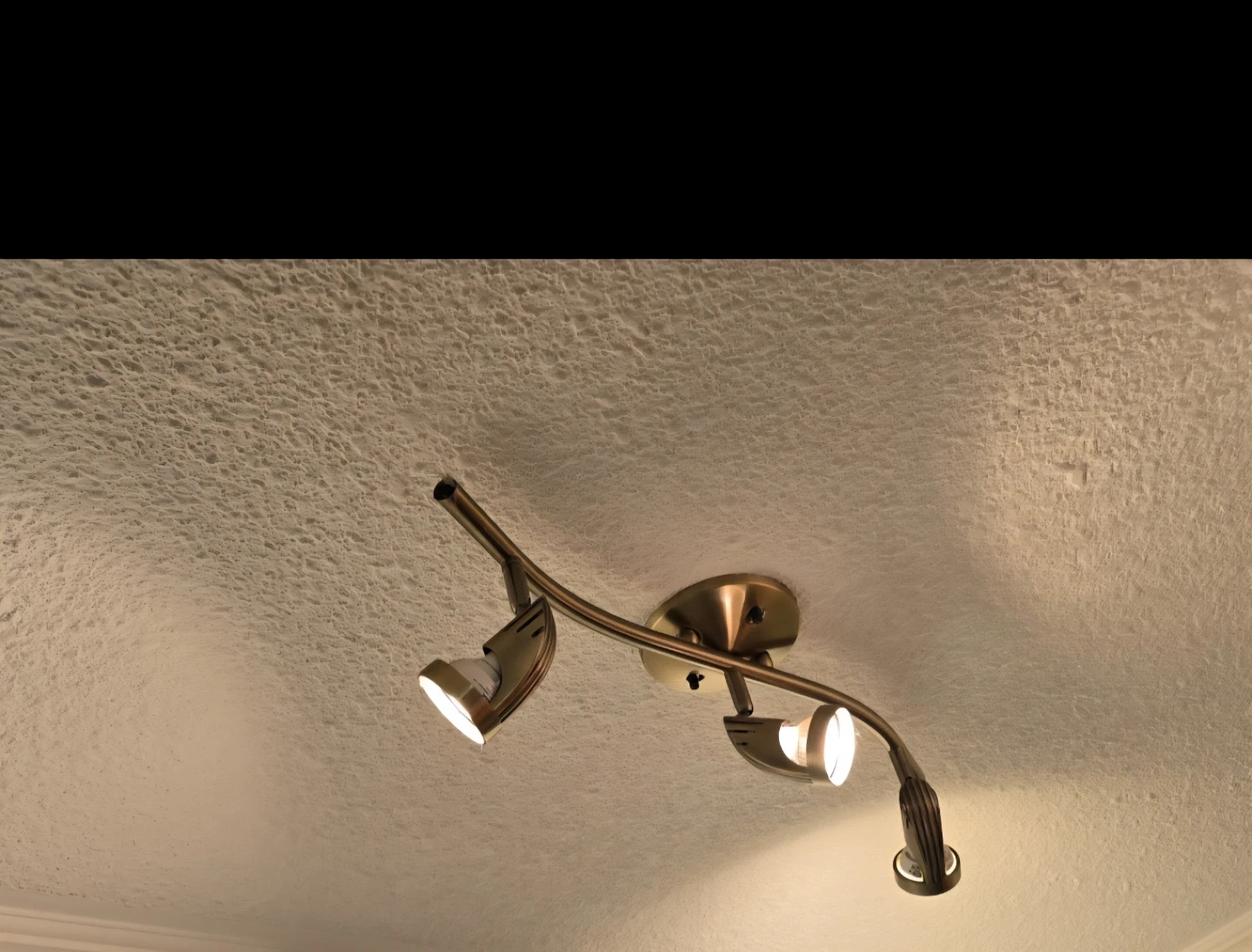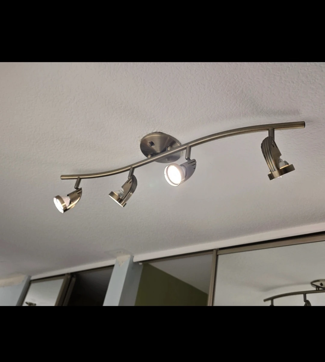 Selling a track lighting fixture with a gold finish. It has multiple adjustable lights, perfect for adding focused illumination to any room. Great condition and ready to install!