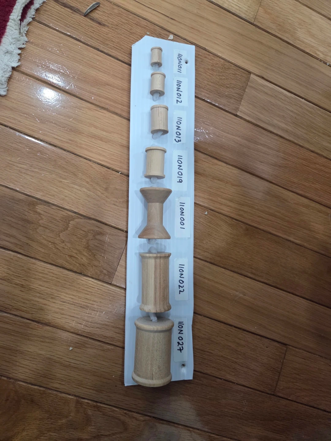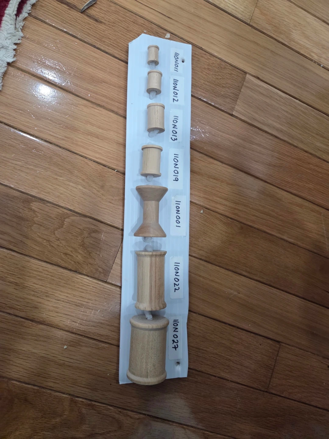 A collection of wooden spools in various sizes. These are made from light-coloured wood. They're suitable for crafting or as decorative items.