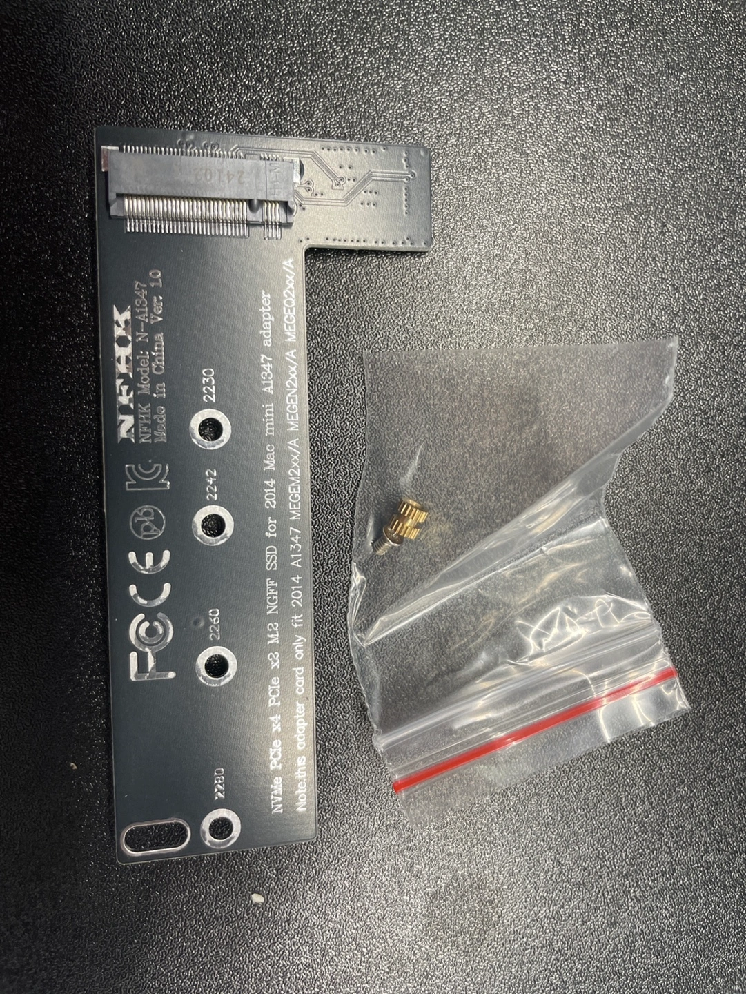 New NGFF SSD to PCIe adapter for 2014 Mac mini. Includes original screws. This item only work for M key M.2 NVME SSD, does not supports SATA bus key B SSD and key B+M SSD