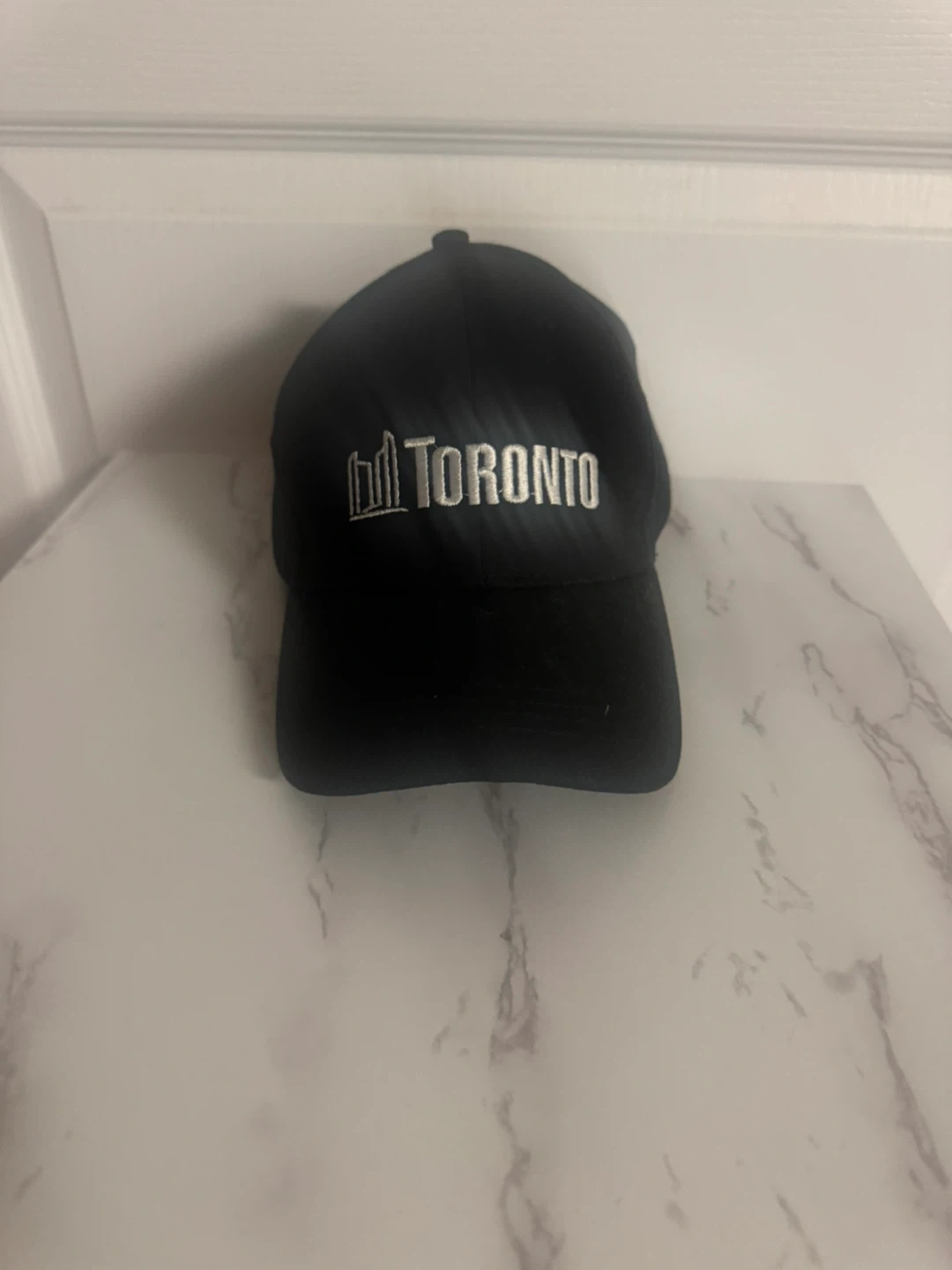 This is a black baseball with the City of Toronto logo embroidered on the front. It's a stylish way to show some city pride. It has a velcro back for an adjustable and comfortable fit.
