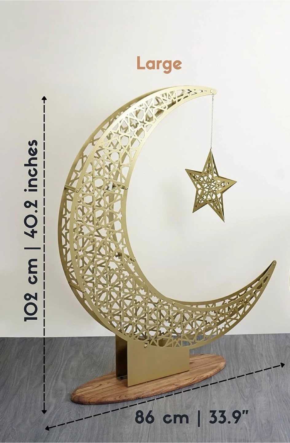 Metal Crescent Moon and Star - Decoration for Home | Ramadan Decor | Wall Art | (102 x 86 cm | 40.2 x 33.9 inches | Large)