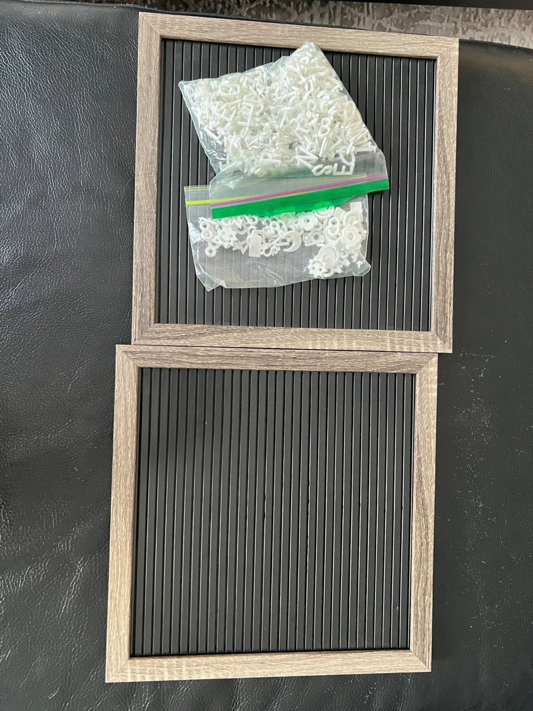 Two letter boards with a rustic wood-look frame. Comes with a bag full of white letters and numbers. Great for announcements or decor!