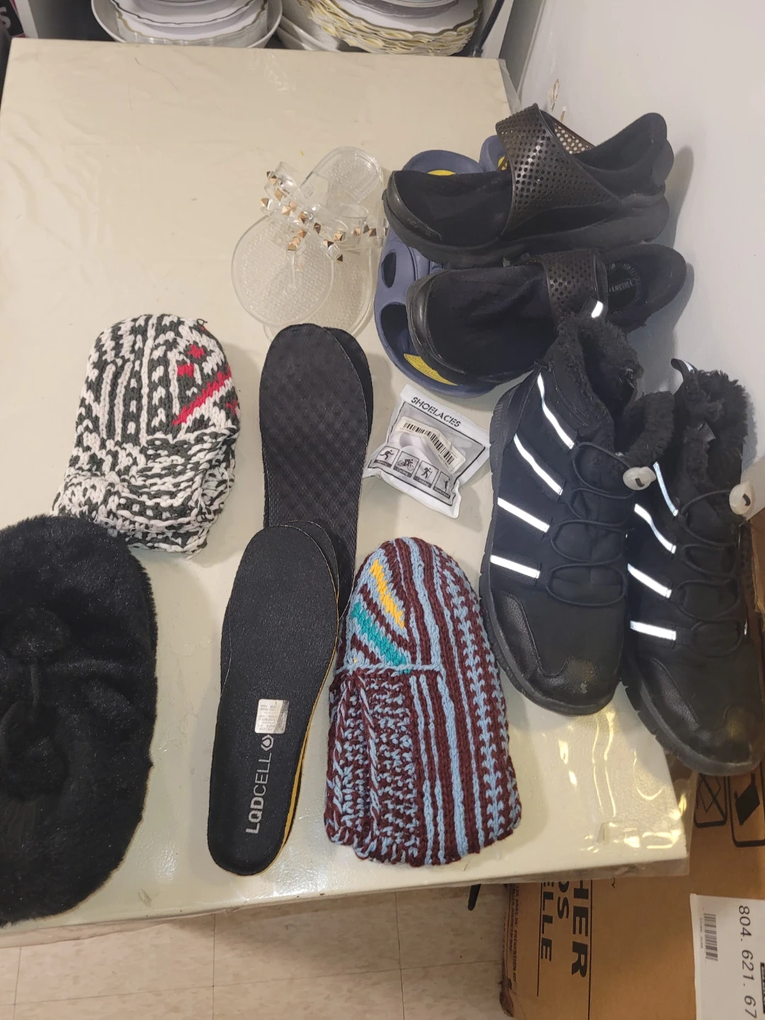 These black winter boots are designed for warmth with a fuzzy lining. They feature reflective stripes for added visibility. Elastic laces with a toggle allow for a secure fit. These boots are great for staying warm and seen during colder months!