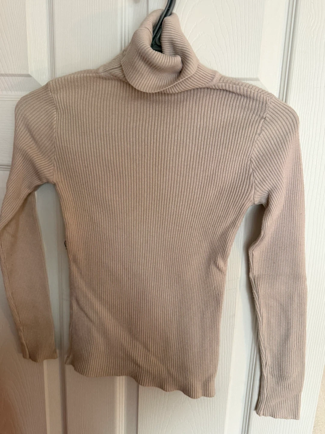 This lot includes four women's long sleeve tops. Features include various necklines and ribbed textures. Materials vary by top.