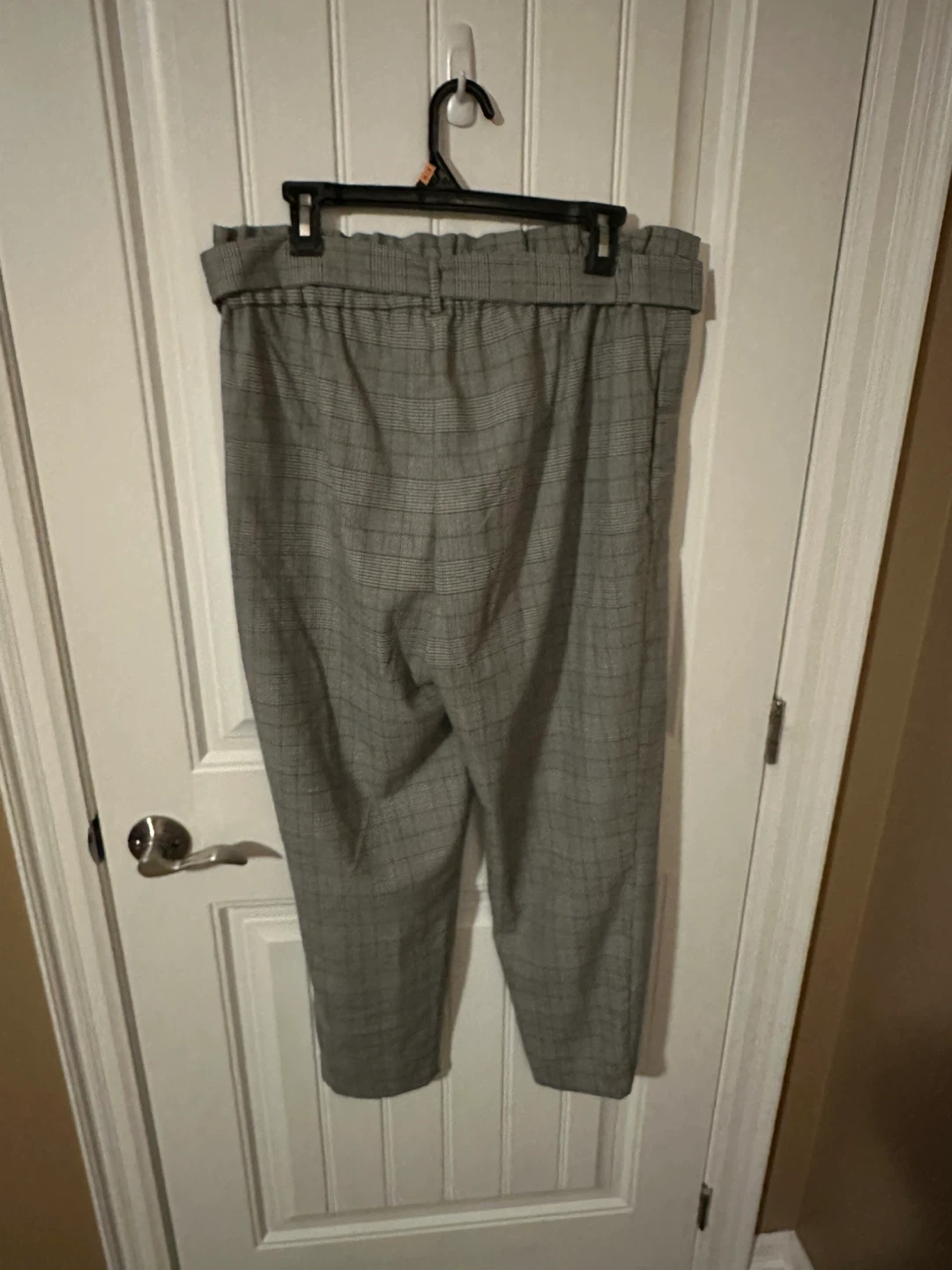 These Dynamite pants feature a classic plaid pattern with a paperbag waist and a matching belt. They're a size G/L. Their stylish design makes them suitable for both casual outings and more dressed-up occasions.