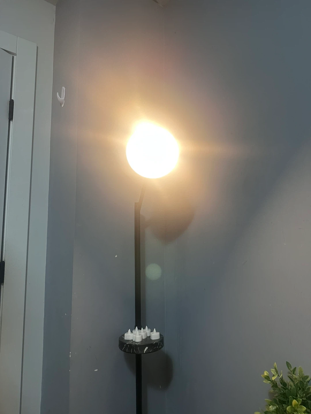 Black floor lamp with shelf