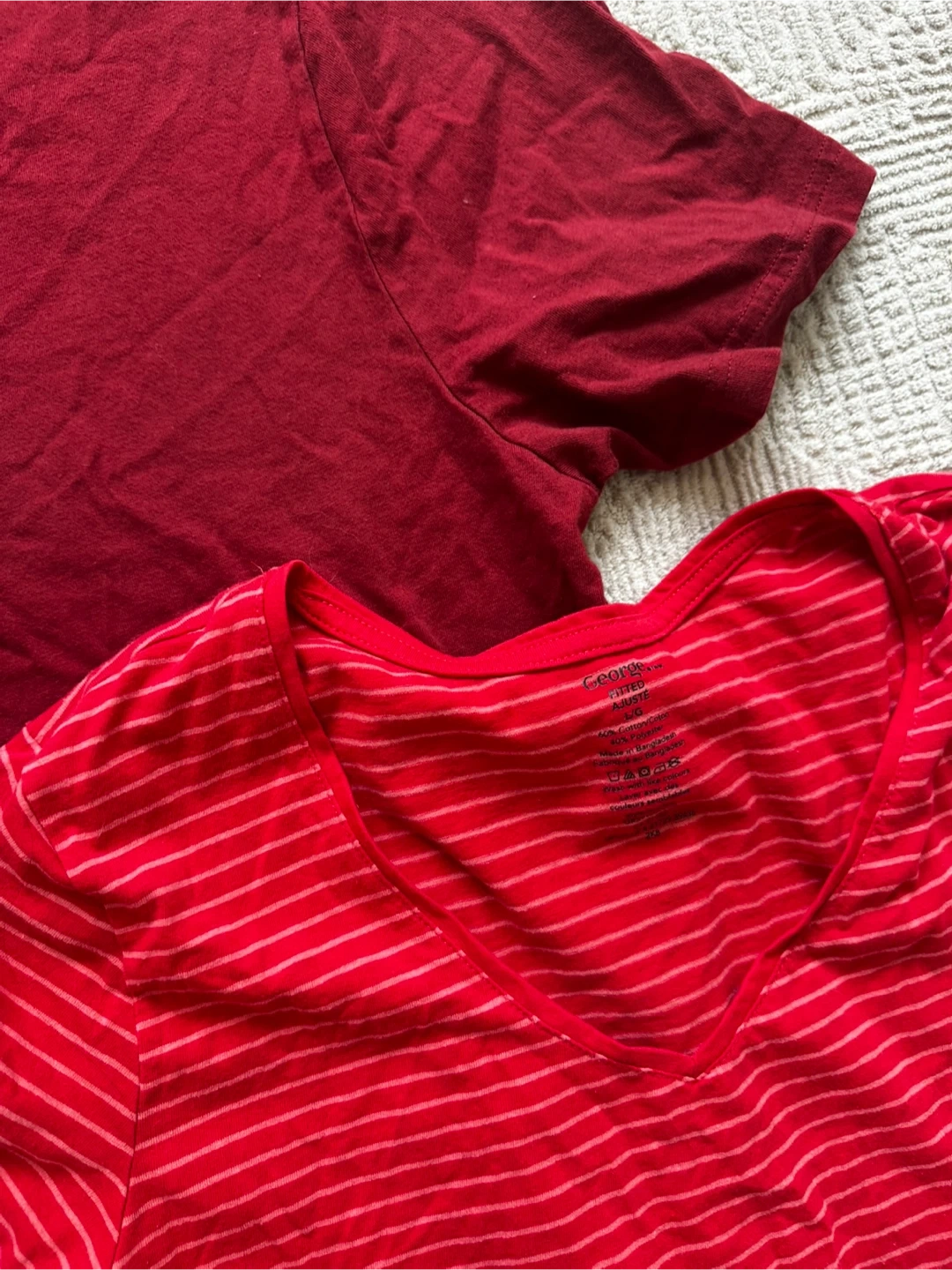 2 T-Shirts: Burgundy "37% Awake" & Red Striped