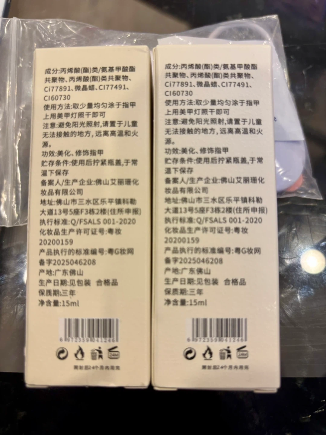 Each bottle contains 15ml of polish and expires in 2028 November 30 and 2028 November 26 respectively.