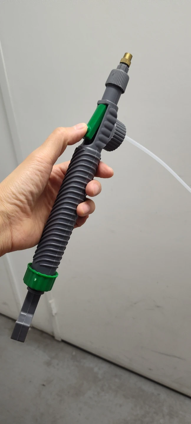 This is a spray trigger designed to attach to bottles. It has an adjustable nozzle for different spray patterns and a trigger lock for continuous spraying. It's great for watering plants or applying garden treatments.