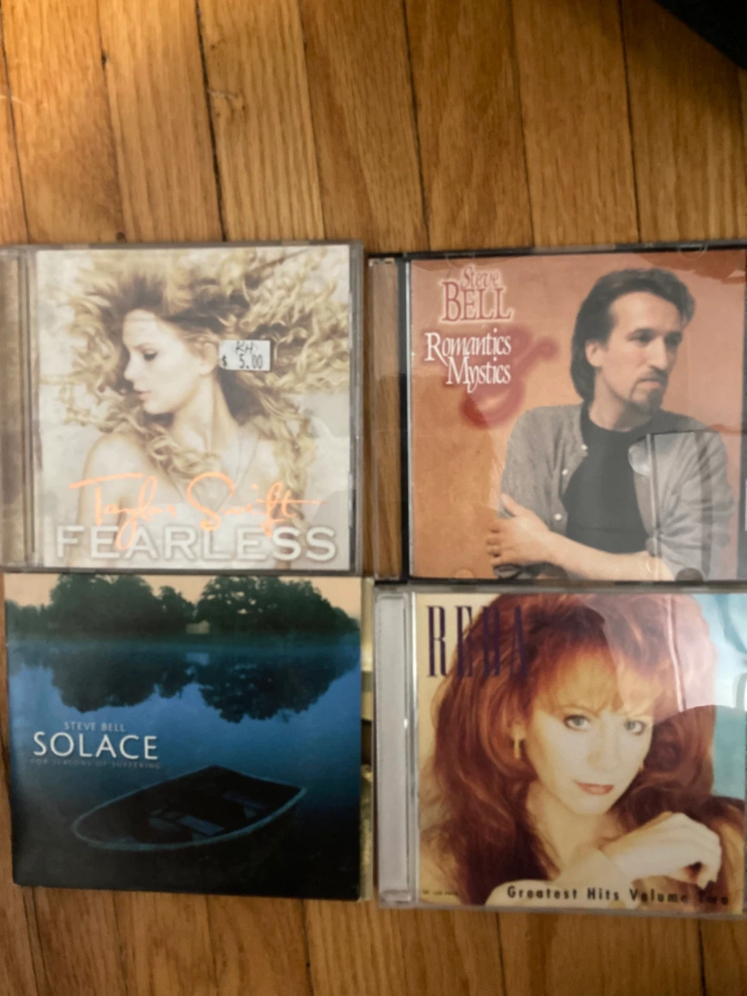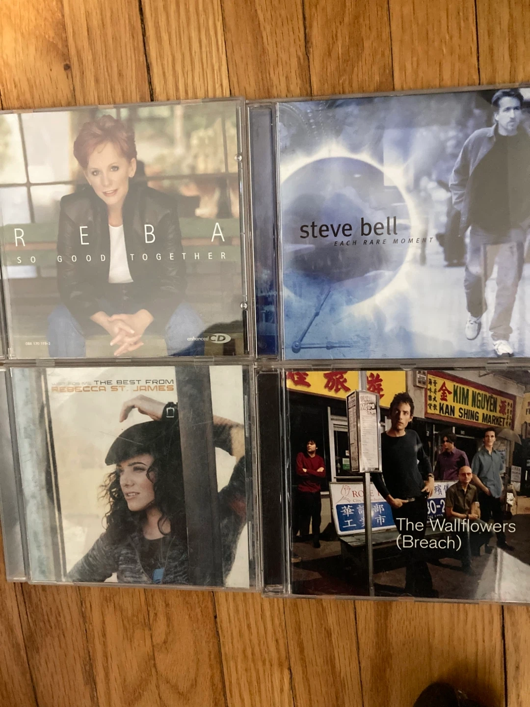 Collection of music CDs including Reba, Steve Bell, Rebecca St. James, Taylor Swift, The Wallflowers, Jersey Boys, Spice Girls, Tony Bennett, Pentatonix, and Waylon Jennings. Perfect for music collectors! $3 each or all for $30, willing to negotiate.