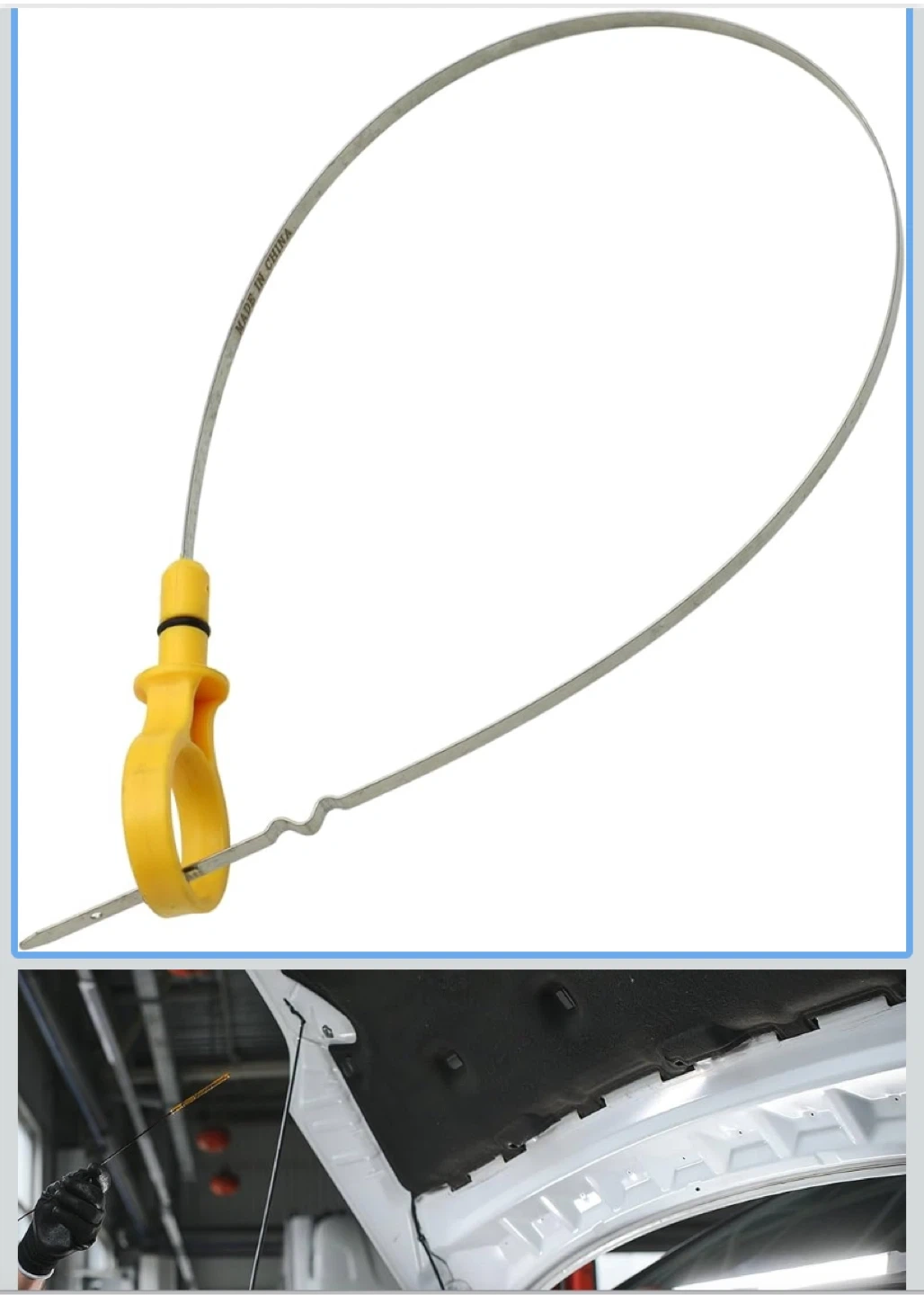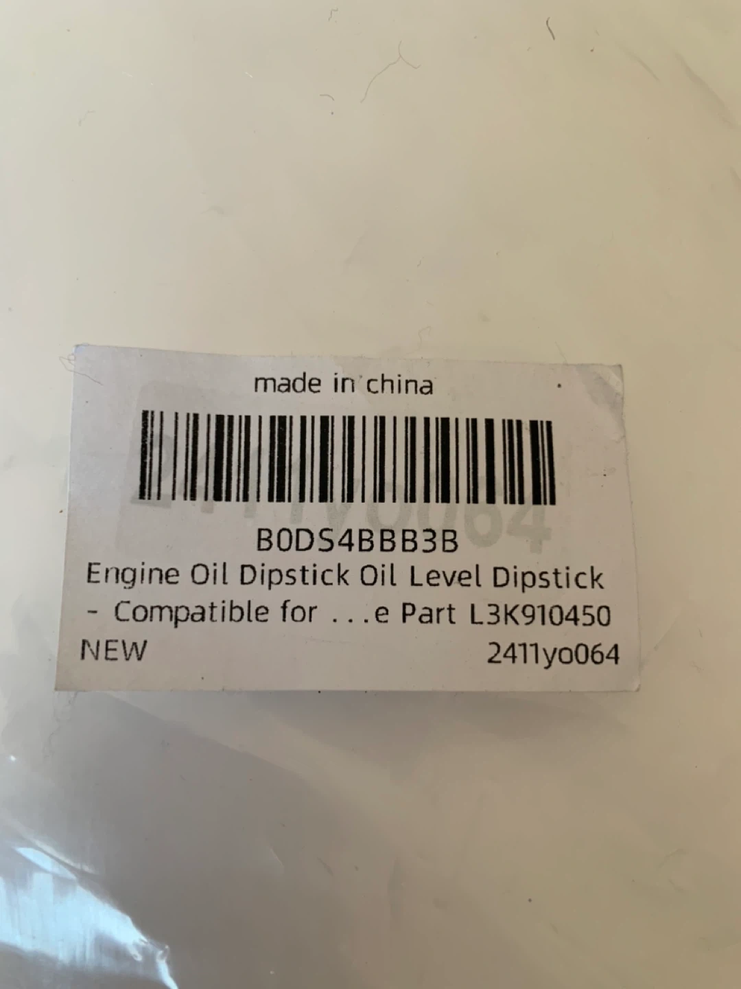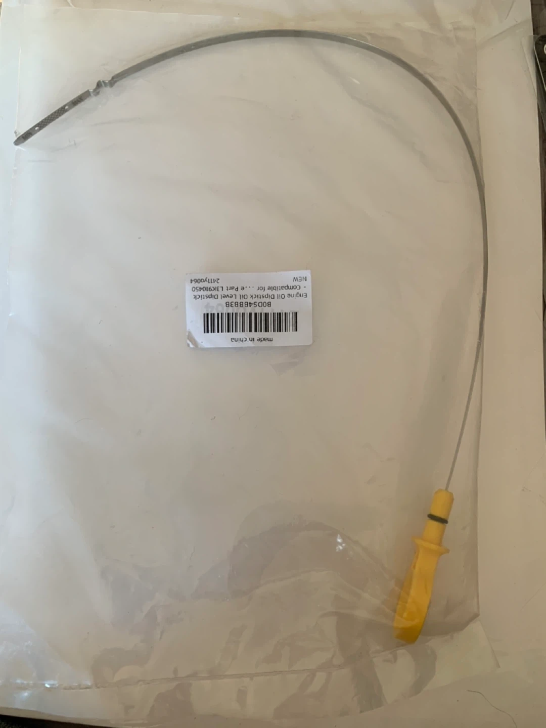 This engine oil dipstick is designed to check the oil level in your vehicle. It's made with a yellow handle and a metal rod. The OE number is L3K910450. This part is compatible with specific vehicle engines.