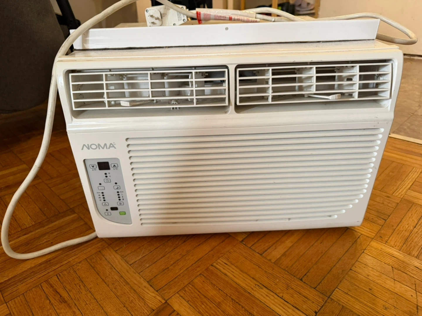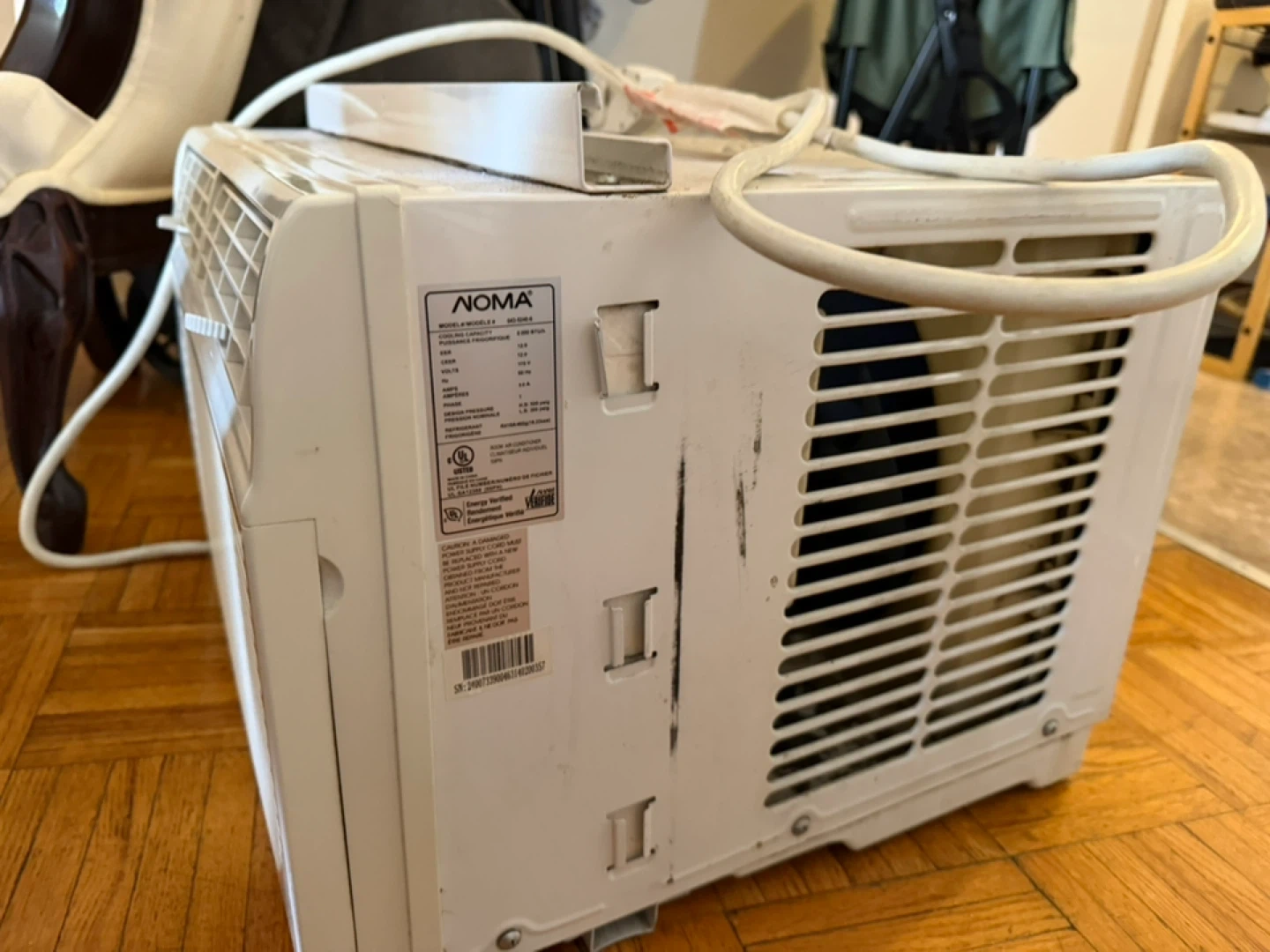 This is a NOMA window air conditioner. It's white and ready for installation. Needs a good cleaning from storage.