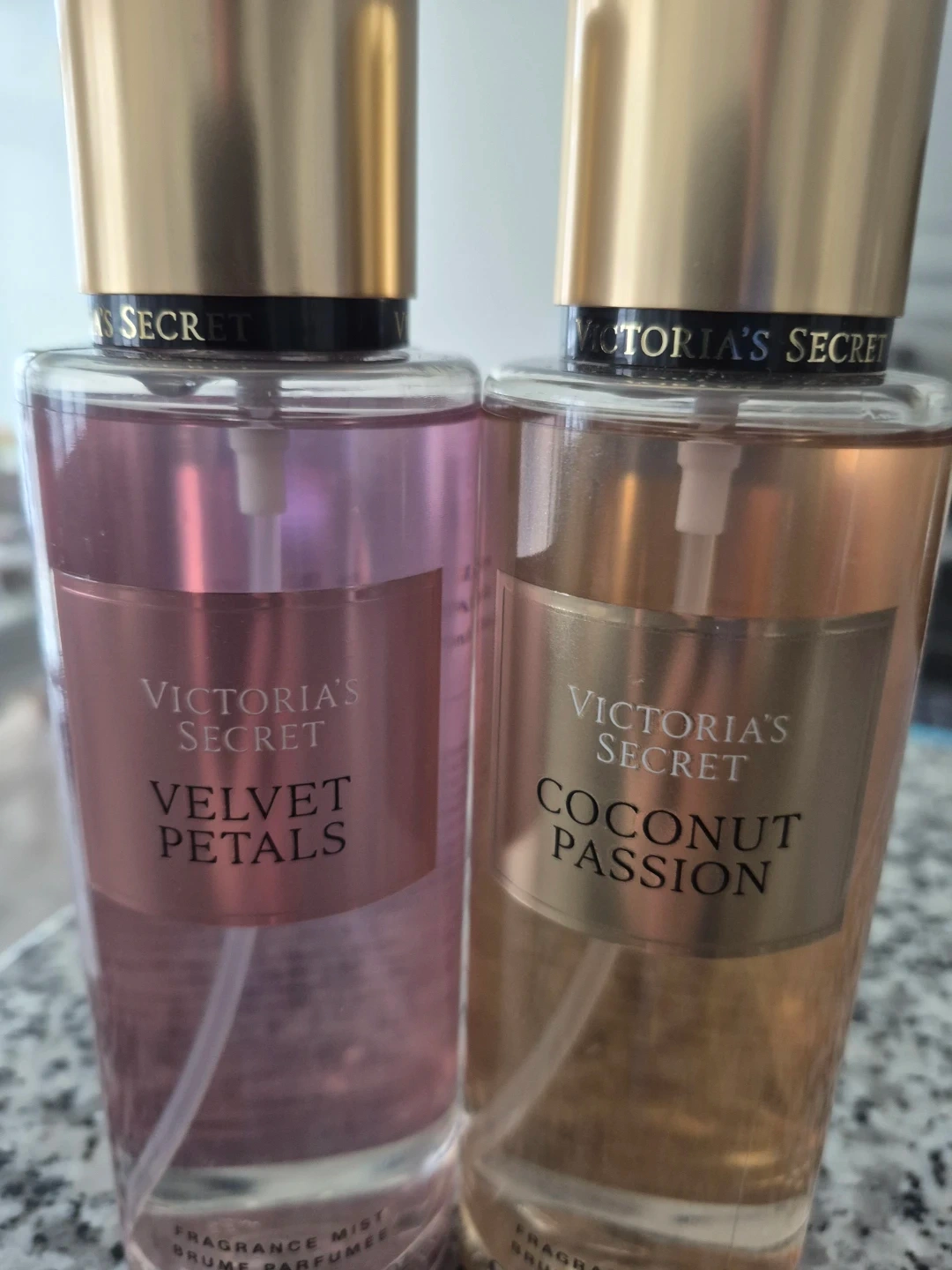 Set of two Victoria's Secret fragrance mists. Includes Velvet Petals and Coconut Passion scents. Each bottle is 250ml / 8.4 fl oz.