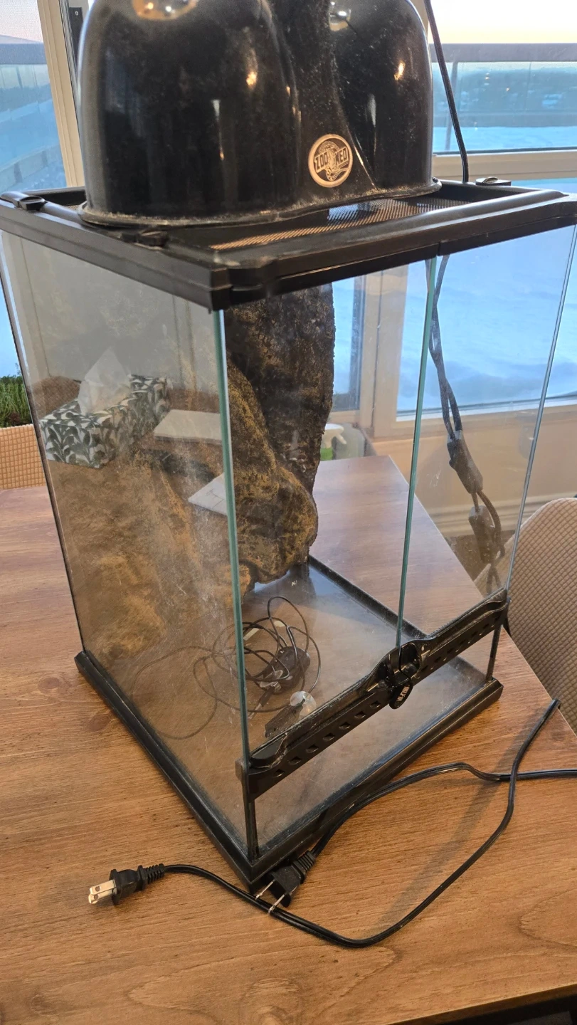 This is a moderately used Exo Terra Tall Glass Reptile Terrarium size 12 in x 12 in x 18 in (30 W x 30 D x 45 cm H)