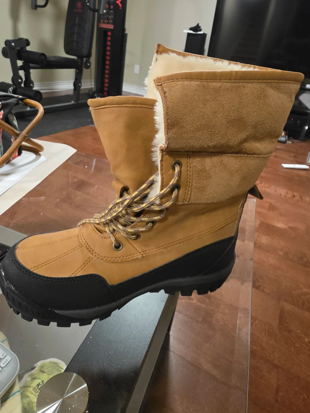 Timberland boots. Never worn except to try on. Lost receipt so can not return. These warm winter boots feature a tan suede exterior and a cozy shearling lining. They have a lace-up front for a secure fit and a durable black sole. Perfect for keeping your feet toasty on cold days! Reasonable offers considered.