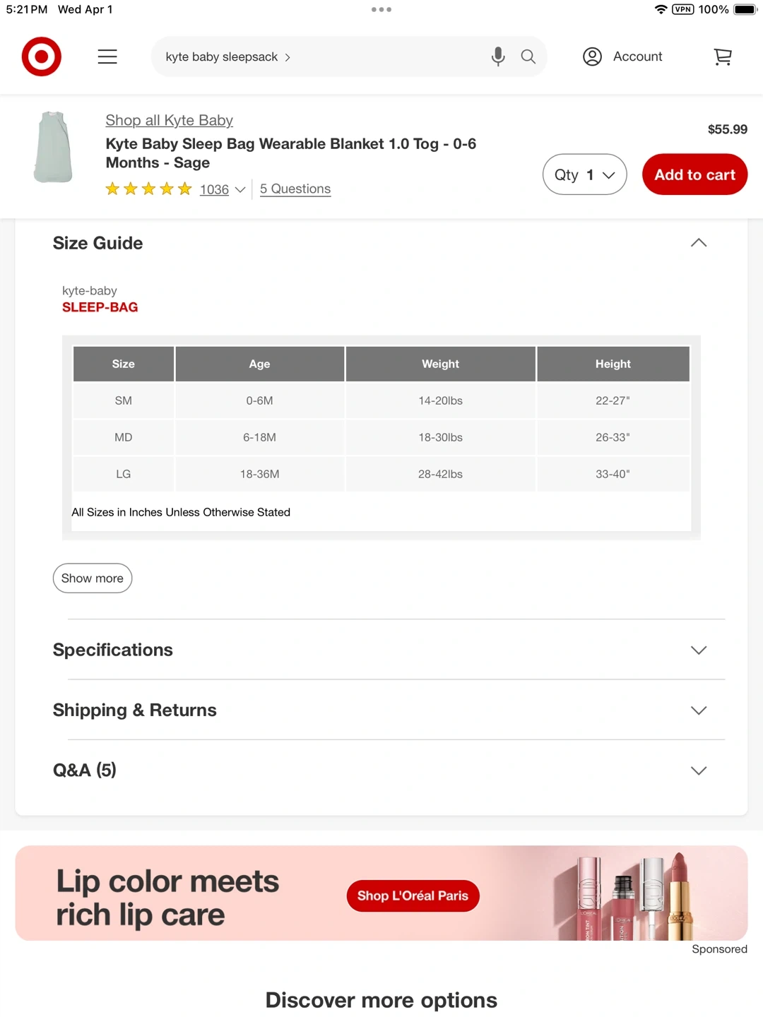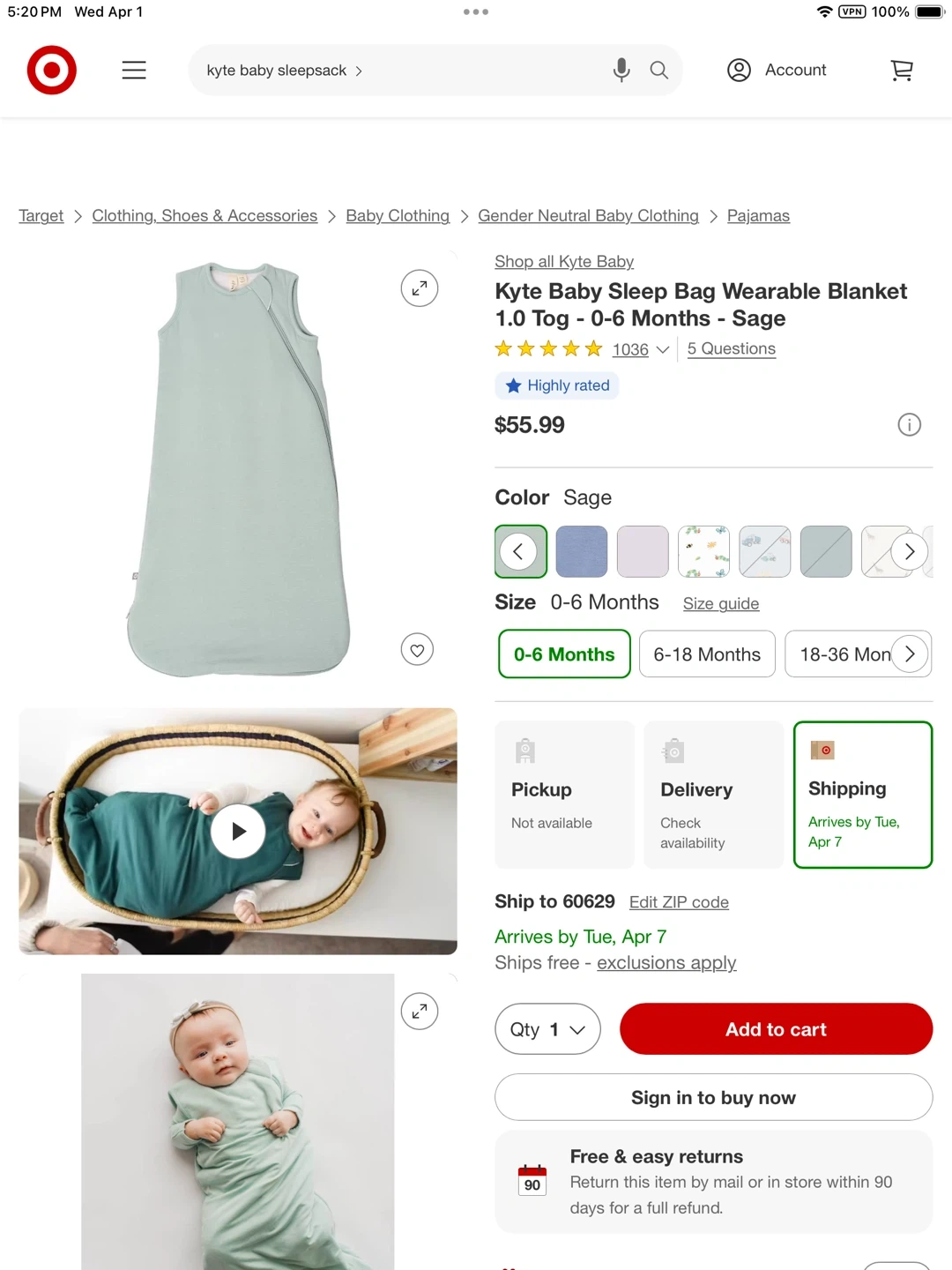 Kyte Baby Sleep Bag Wearable Blanket 1.0 Tog - 0-6 Months - Sage