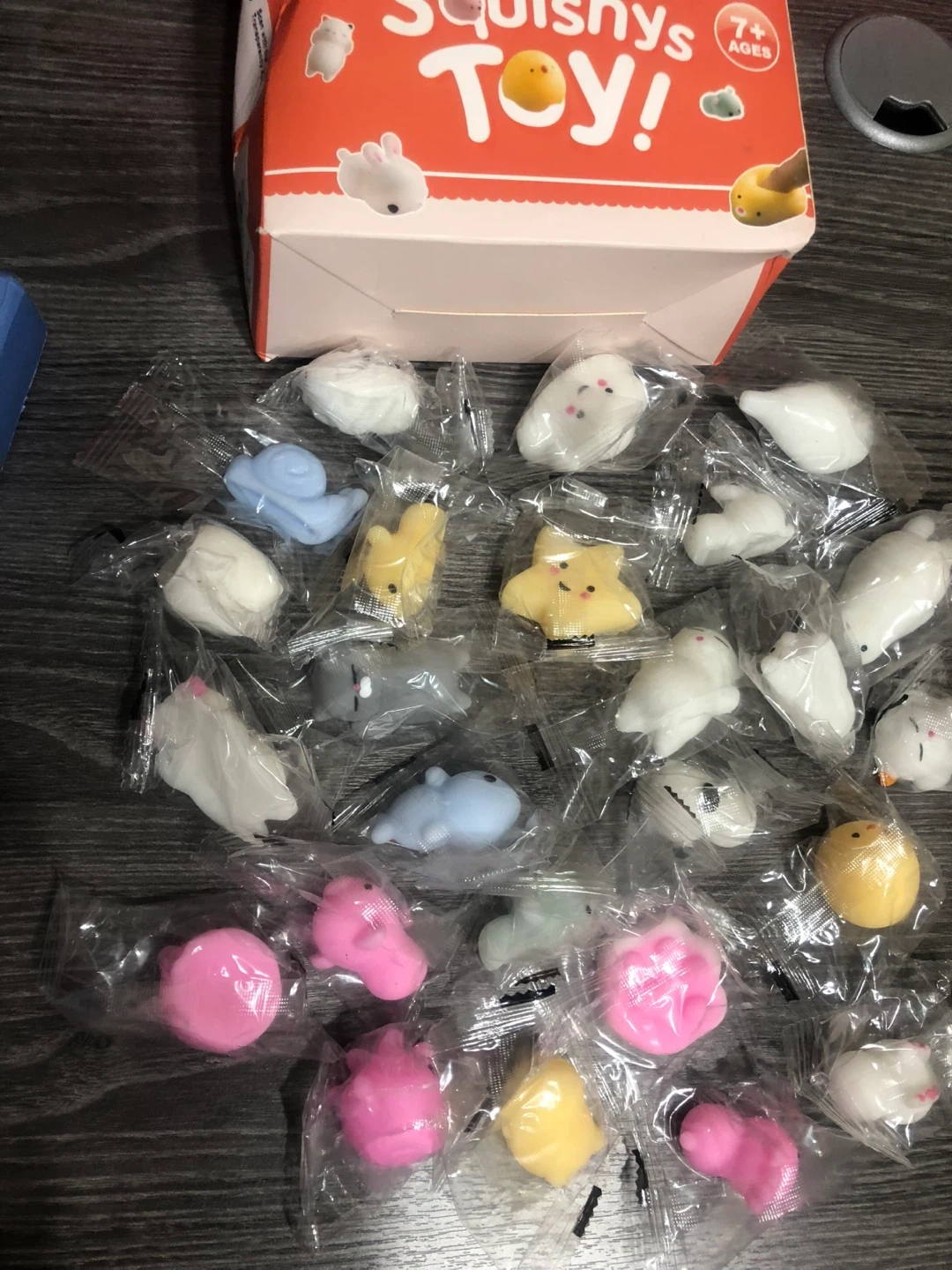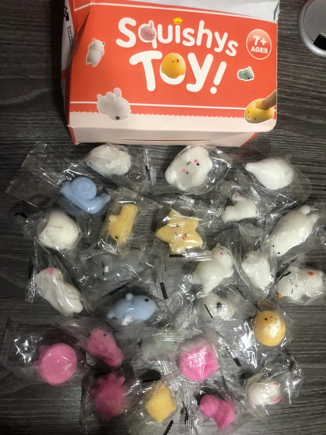 This new 25 pcs small squishy toy set includes a variety of cute mochi squishies. They are individually packaged for easy distribution. Suitable for ages 7 and up!