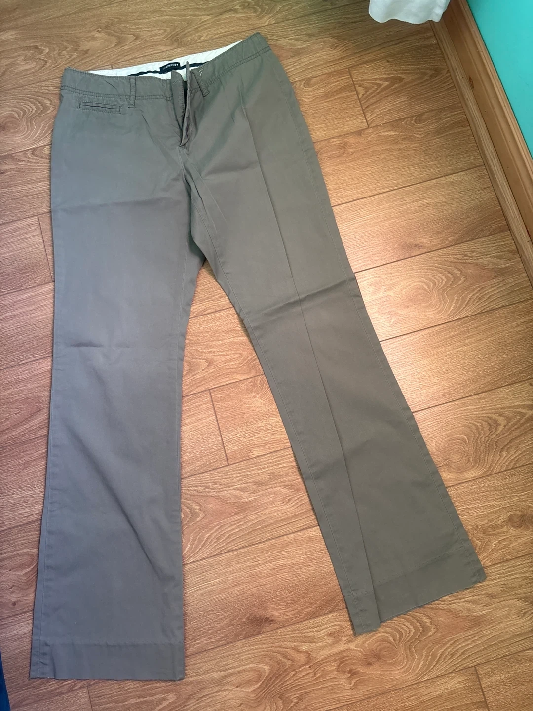 Khaki coloured bootcut pants from Gap. These pants are made of a cotton blend. They have a mid-rise fit with a zipper fly closure. Perfect for everyday wear!