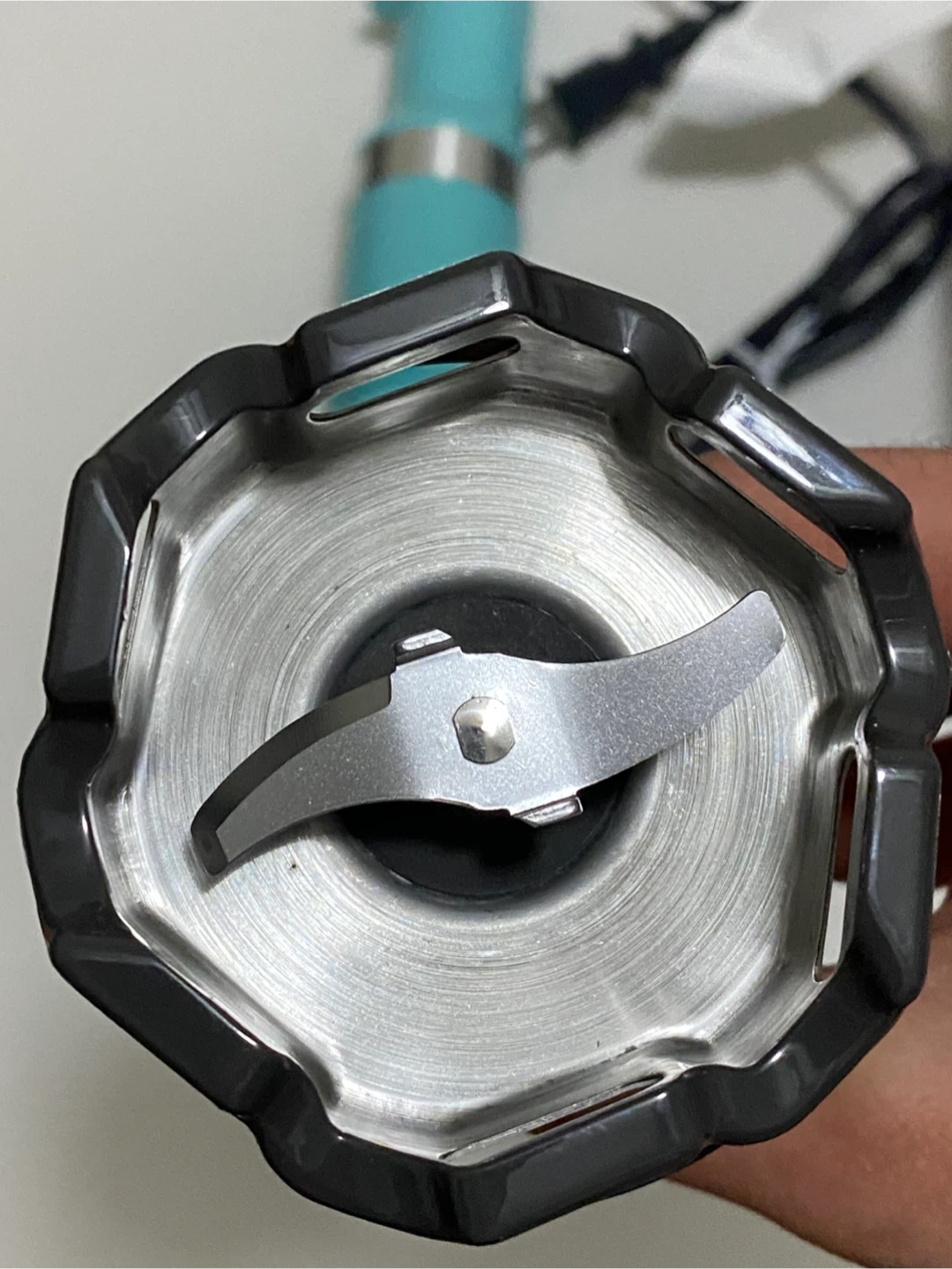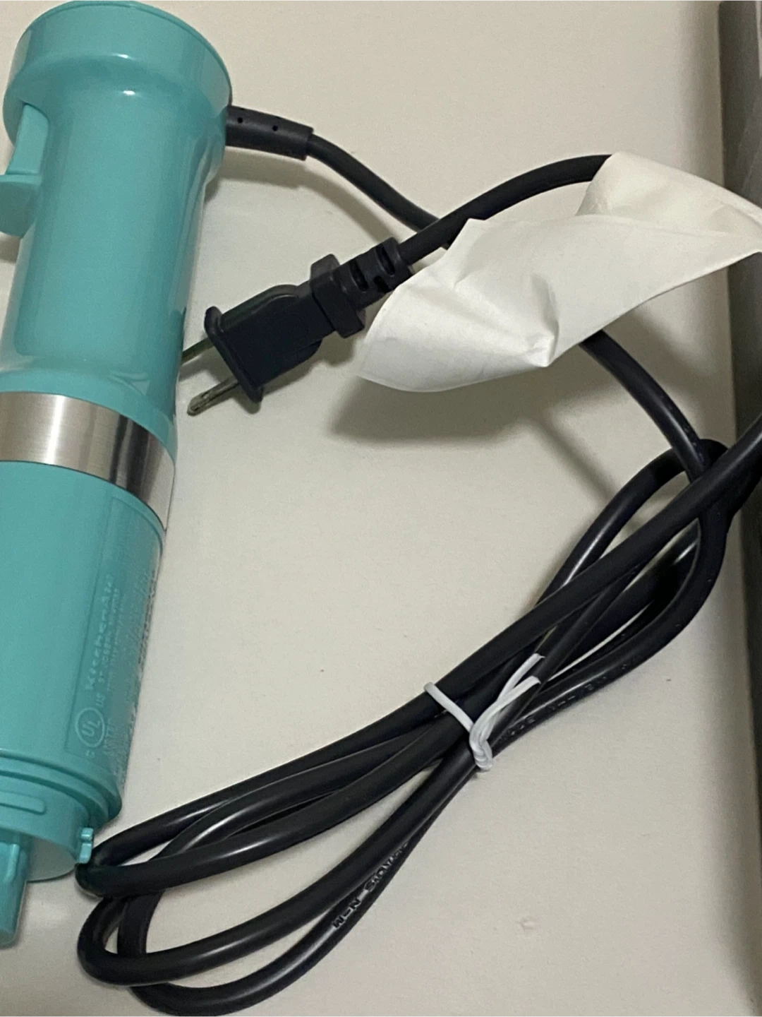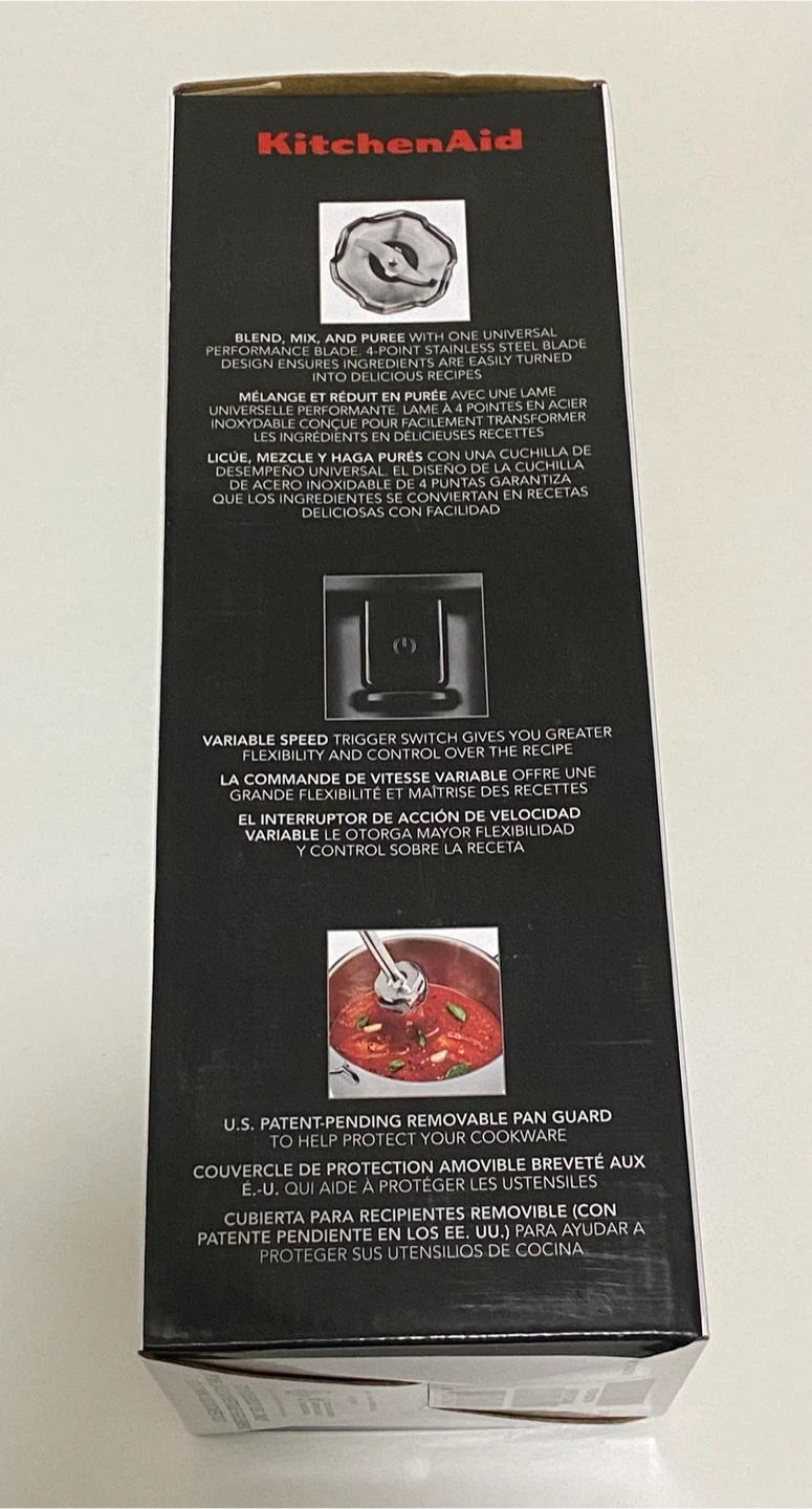 It's a KitchenAid corded variable speed hand blender in Aqua Sky. Includes a 20.3 cm removable blending arm with bell blade. Perfect for blending soups, smoothies, and sauces.