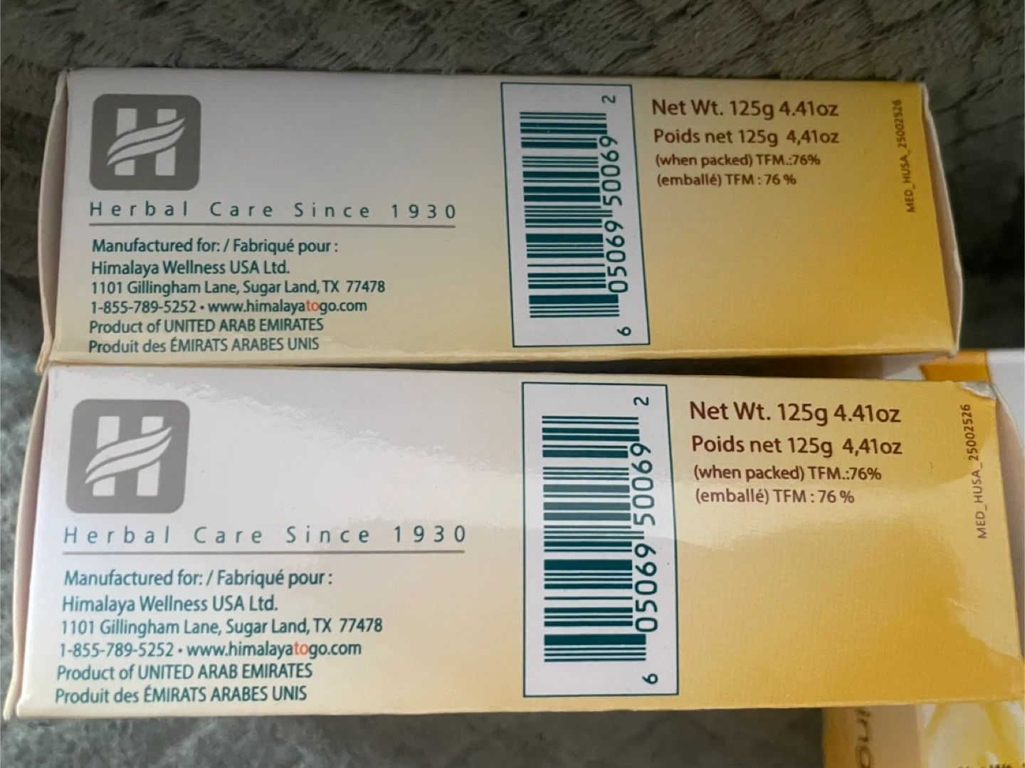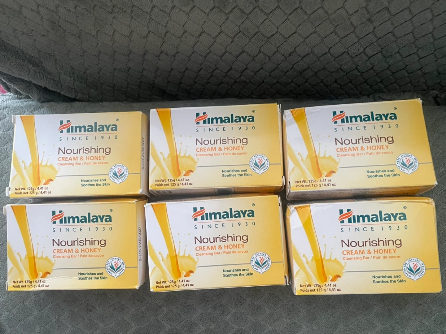 This listing includes six bars of Himalaya Nourishing Cream & Honey Cleansing Bar. Each bar weighs 125g. It's formulated to nourish and moisturize the skin. Dermatologically tested.