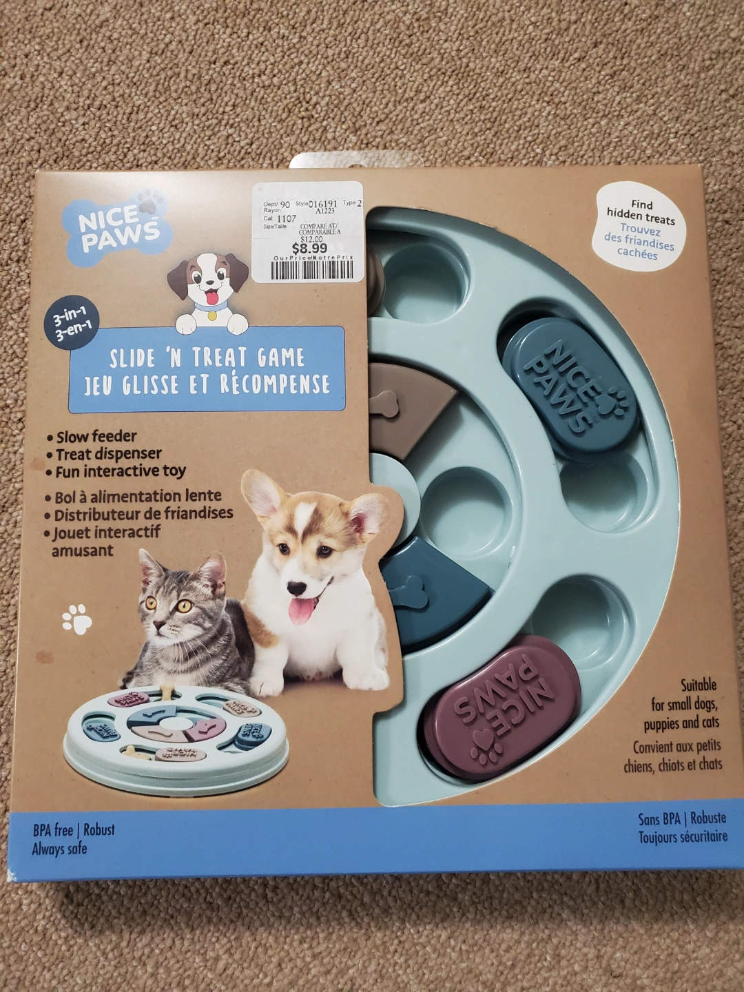 313-in-1 interactive pet toy. Slow feeder, treat dispenser, and fun game. Suitable for small dogs, puppies, and cats. BPA free and robust.