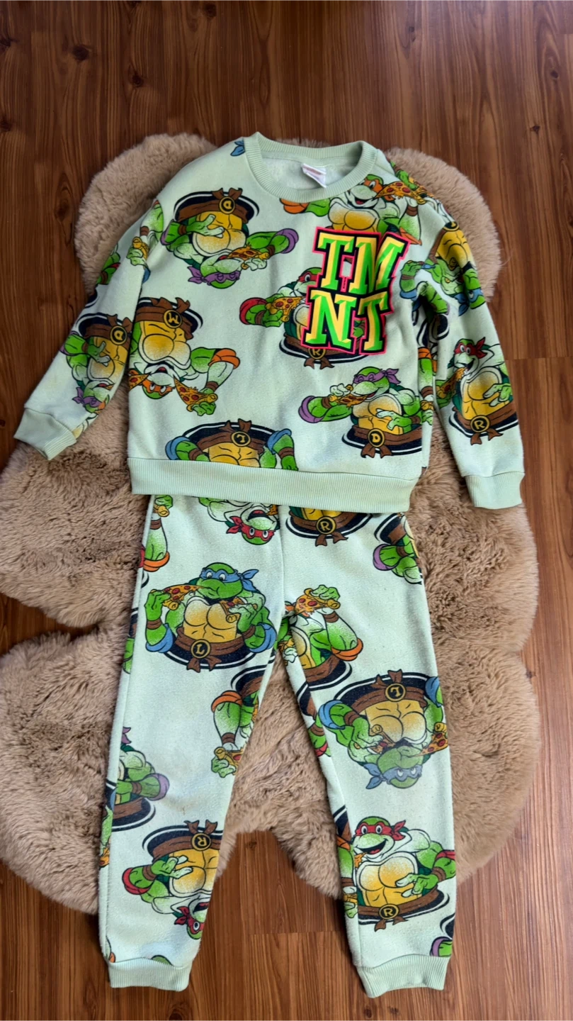 92Super cute Nickelodeon Teenage Mutant Ninja Turtles pajama set in size 5! The material is 72% polyester and 28% rayon. Smoke free and pets free at home! Only available for pick up