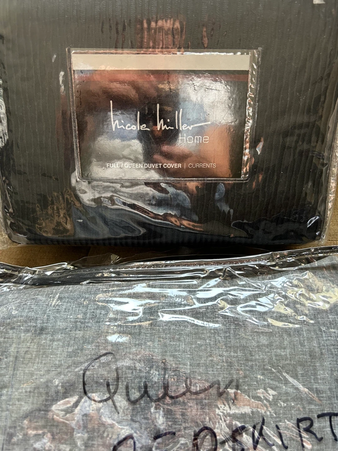 I'm selling a Nicole Miller Home duvet cover set! It's a full/queen size and appears to be in great condition. The set includes a duvet cover and a bedskirt, perfect for adding a touch of style to your bedroom. Let me know if you're interested!