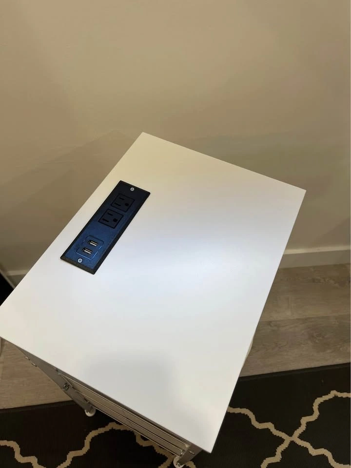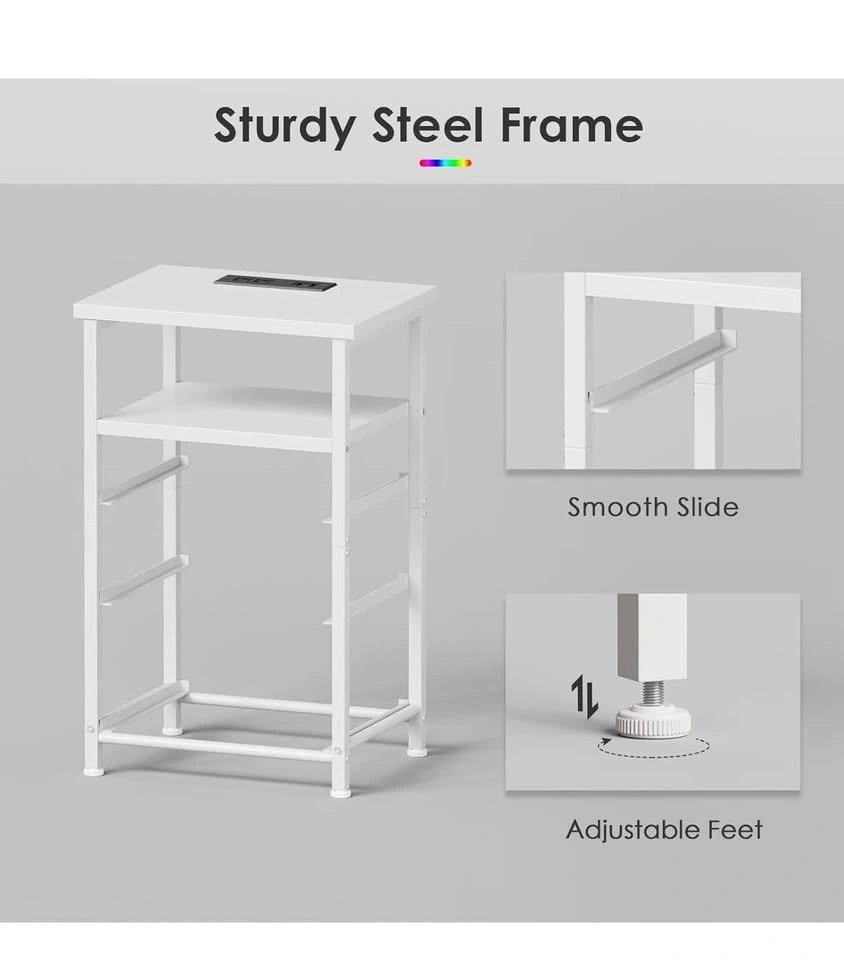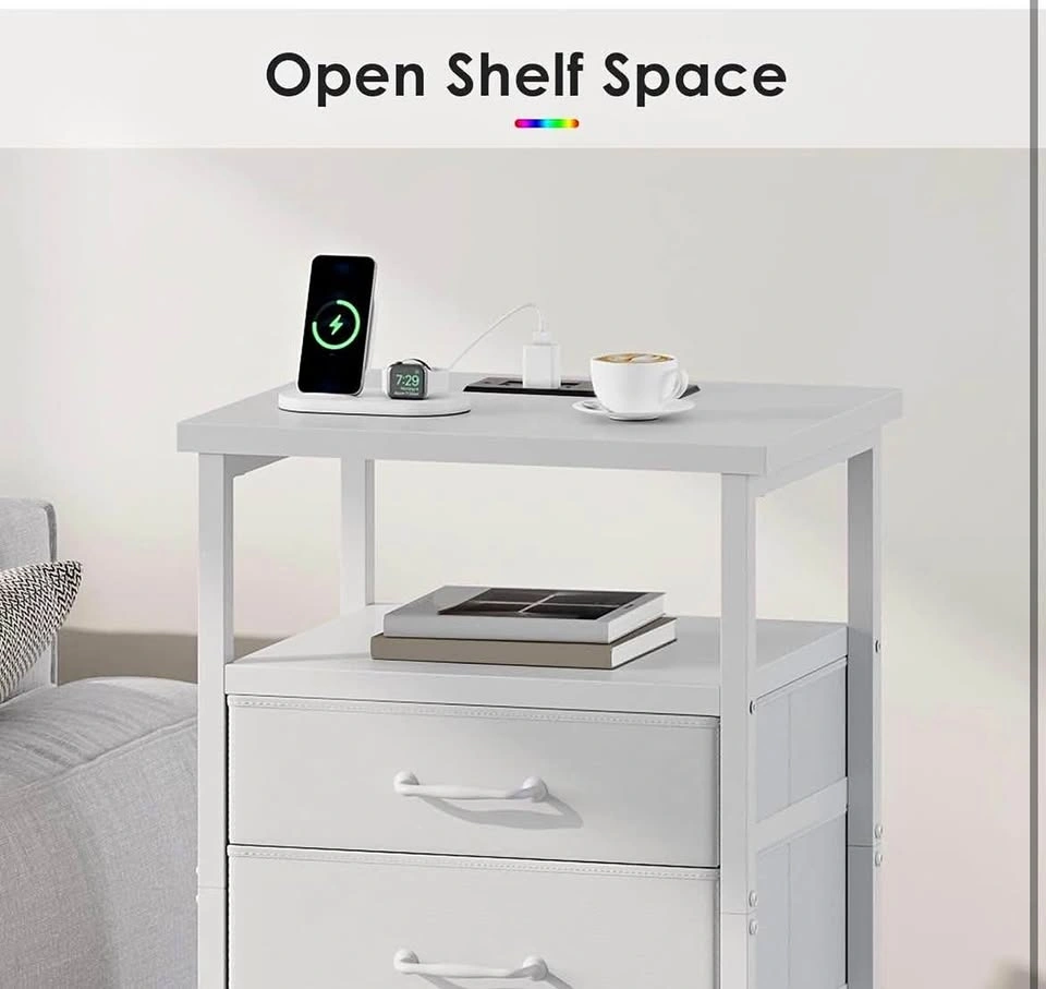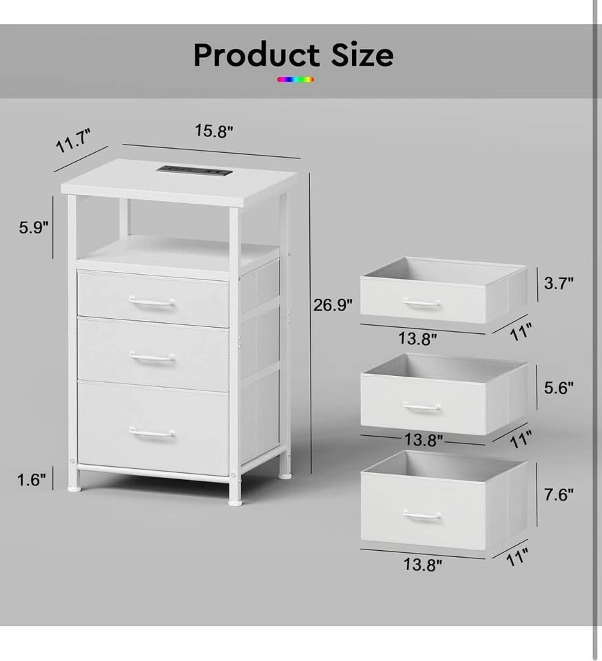 Nightstand with Charging Station Set of 2, LED Night Stand with 3 Fabric Drawers, Side Table with Open Shelf, End Table with Steel Frame, 3 Drawer Dresser for Bedroom, White Comes with remote to change lights color. Brand new white color. Pickup Kitchener only.
