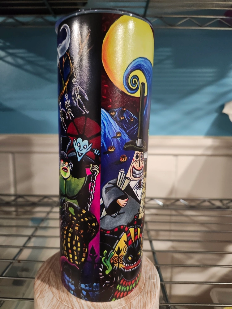 I'm selling a fun tumbler featuring characters from The Nightmare Before Christmas! All tumblers are new and ready to keep your drinks at the perfect temperature. Perfect for any fan! Tumblers are stainless steel, they keep liquids hot for 8hrs and cold for 12. Slider lid and reusable straw included.