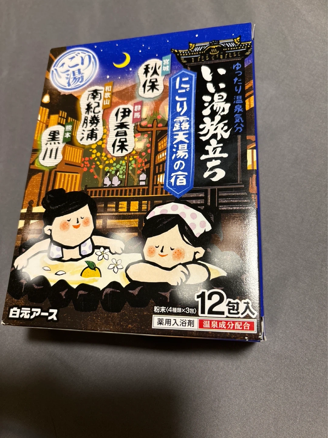 83Enjoy a relaxing bath with Nigorigo Hot Spring bath salts! This pack includes 12 individual packets, with 4 different scents to choose from. Each scent evokes a different hot spring experience in different parts of japan , letting you unwind and enjoy a spa day at home