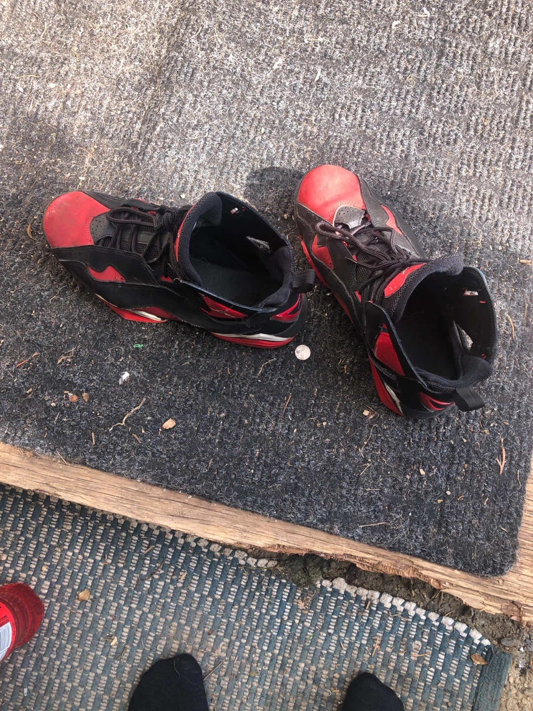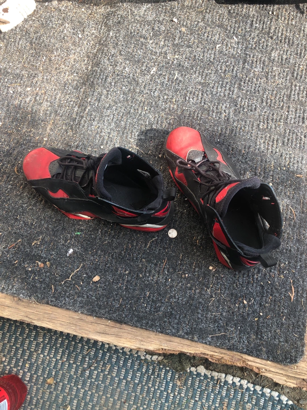 Selling a pair of Nike Air Flight Huarache sneakers in red and black! They're in used condition, as you can see in the photos, but still have lots of life left. Size is a US 10. Great for basketball or just casual wear!