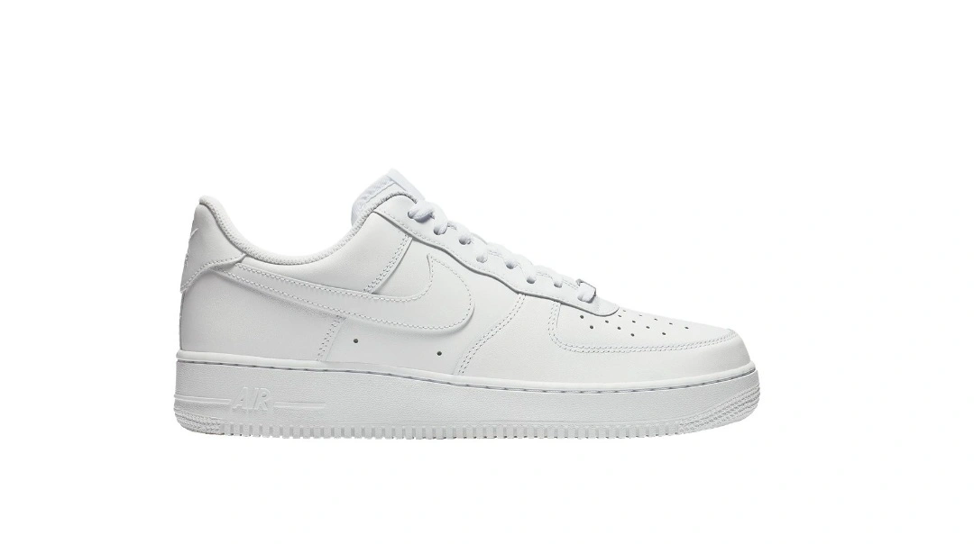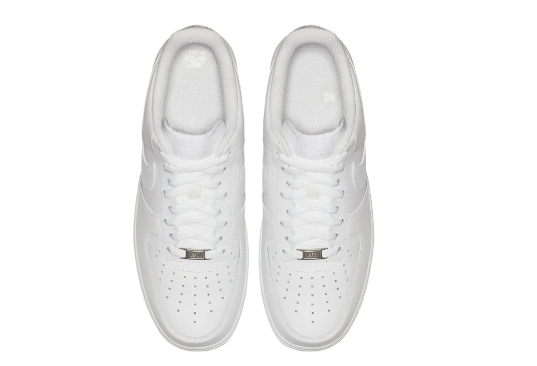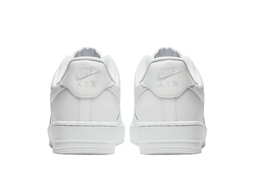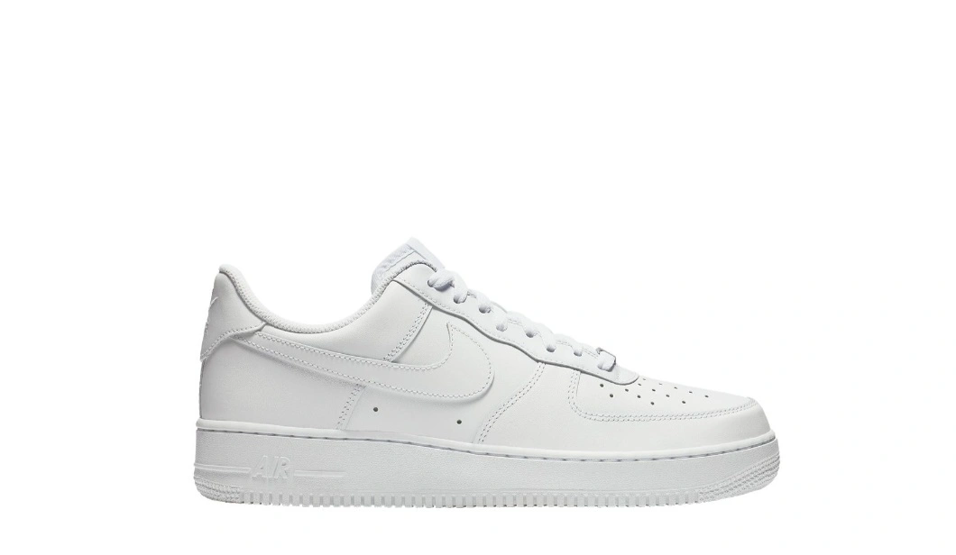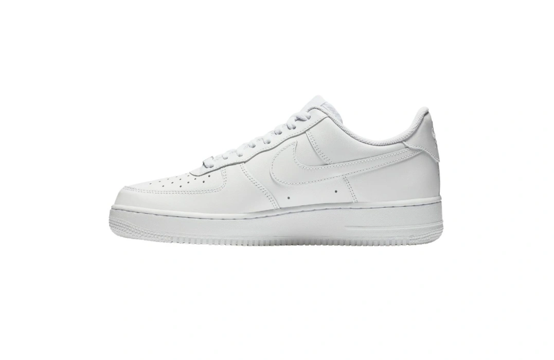 20Classic Nike Air Force 1 '07 sneakers. All-white leather upper. Low-top design. Perforated toe box. Durable sole. Comfortable fit.