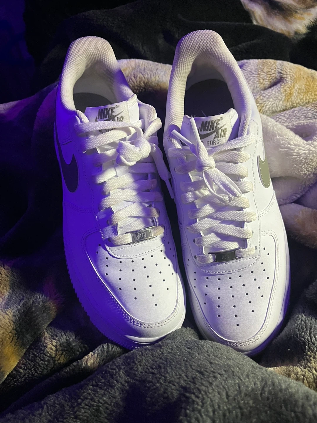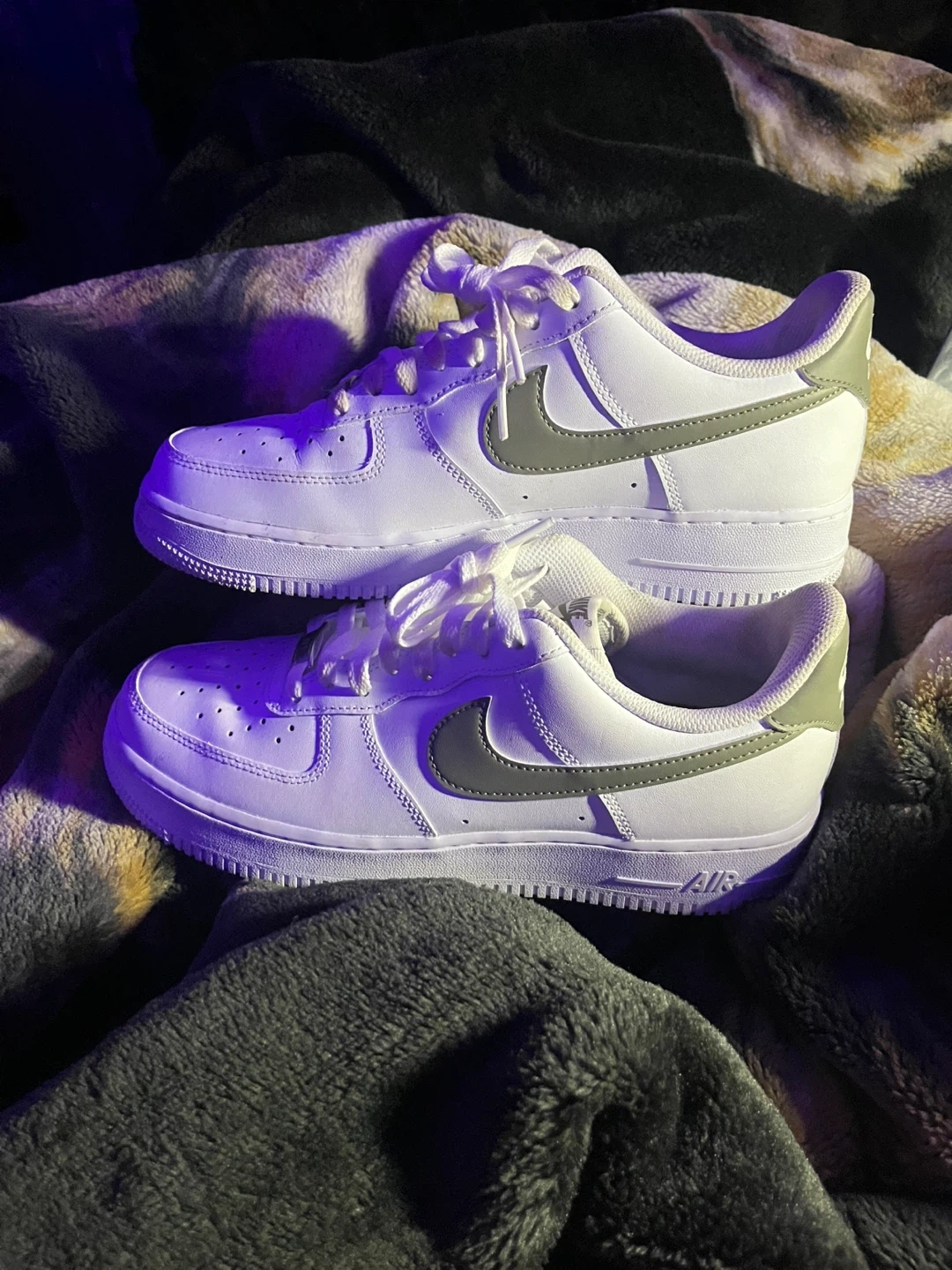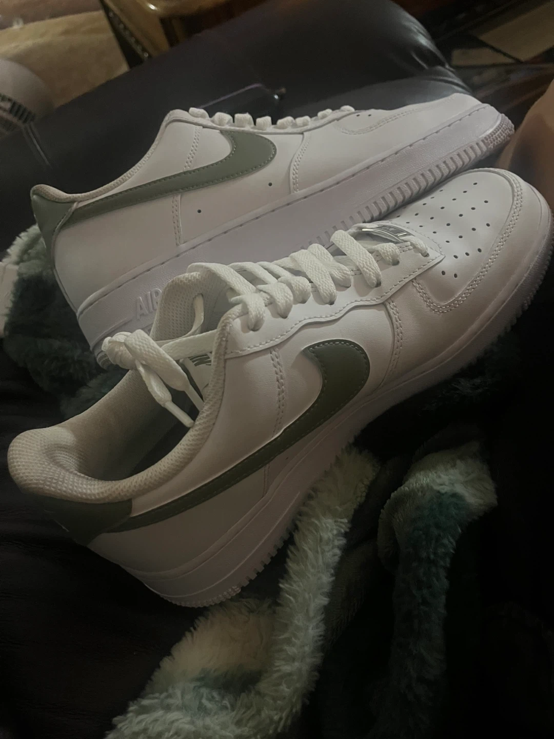 Selling a pair of Nike Air Force 1 '07 sneakers in white with olive green accents! These classic kicks are in great shape and ready for a new home. Perfect for adding a fresh touch to your everyday style