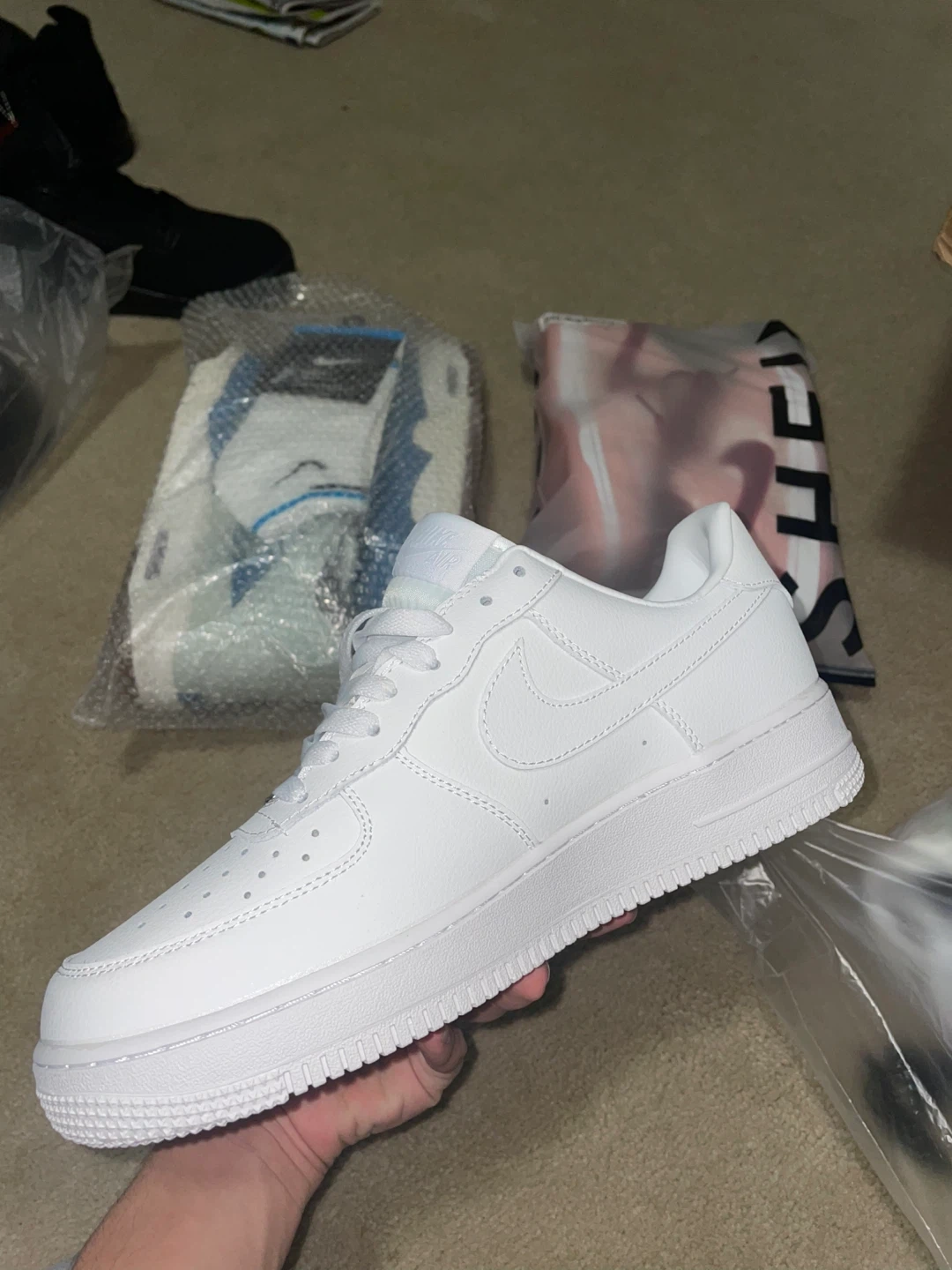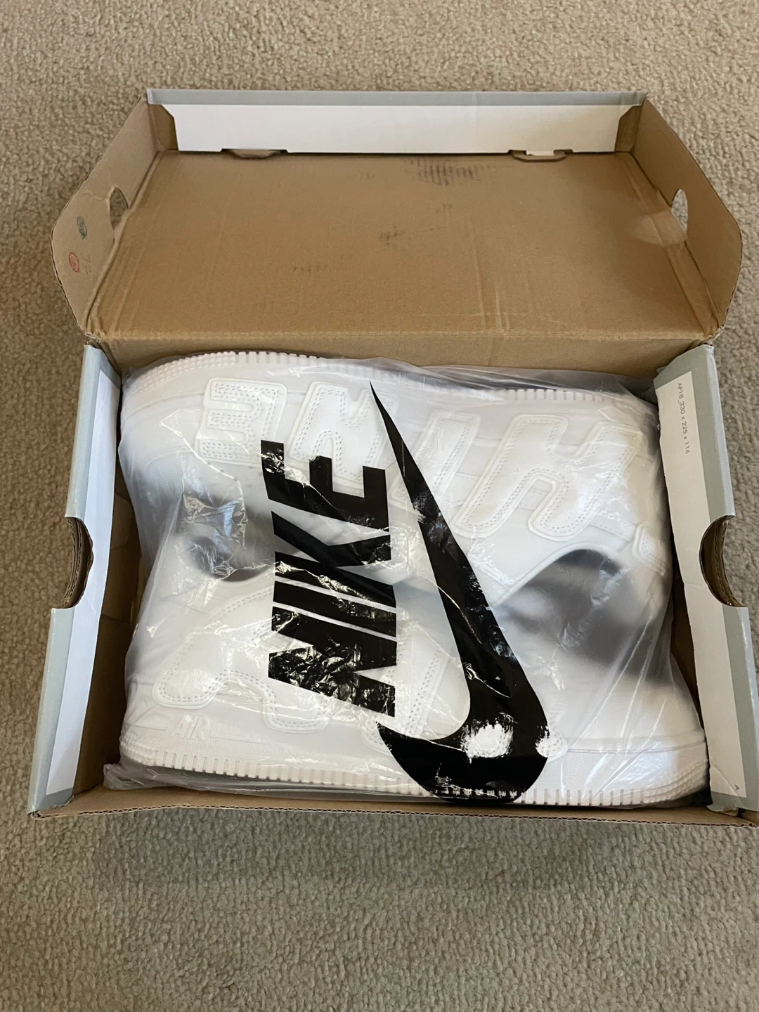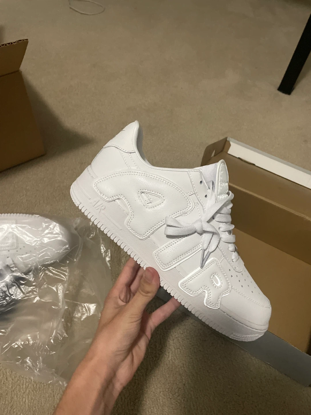 12Brand new 1/1 Size 9.5 Lowest price in market DM before it’s gone Selling a pair of Nike Air More Uptempo x Air Force 1 sneakers in white. These shoes are brand new and come with the original box. A stylish and unique addition to any sneaker collection!