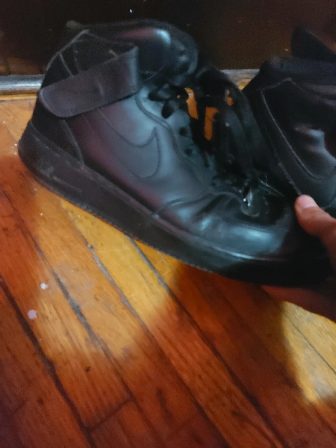 10Selling a pair of Nike Air Force 1 High '07 sneakers in black. They show signs of wear, as you can see in the pictures, but still have lots of life left in them! Great for everyday wear or hitting the court.