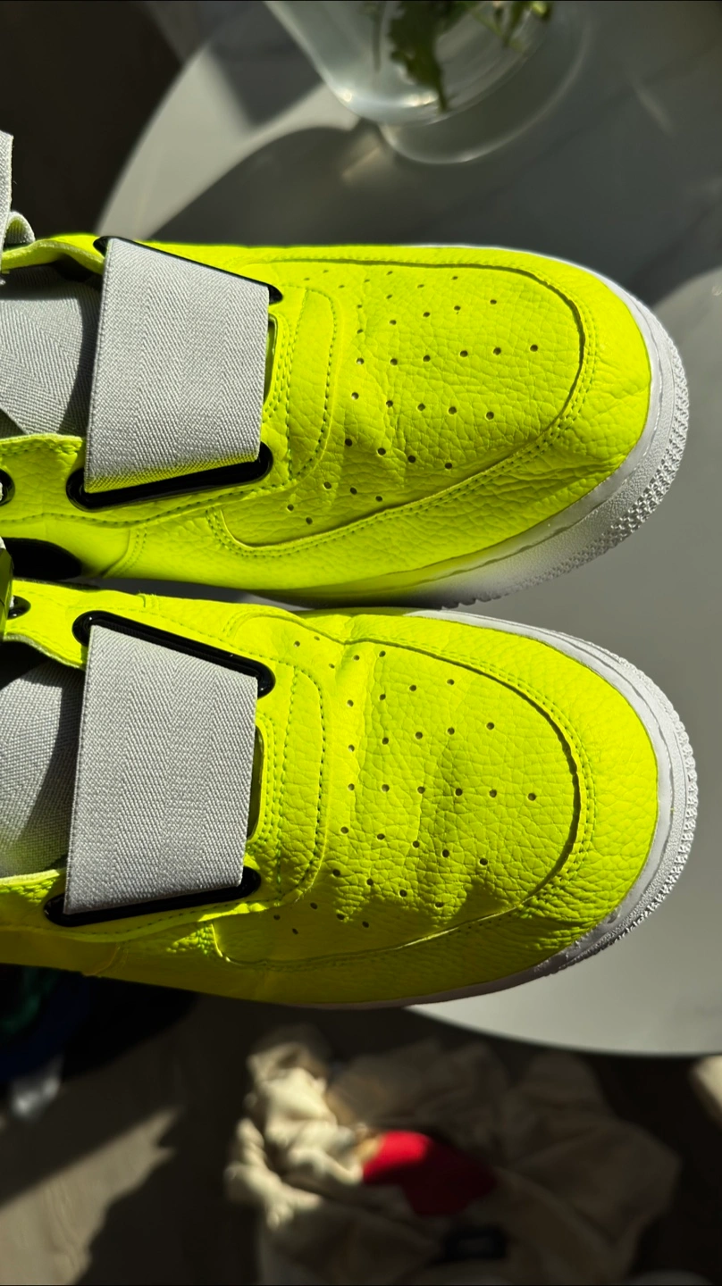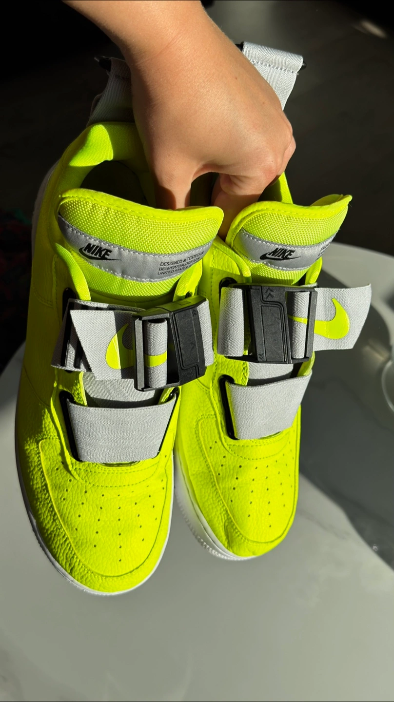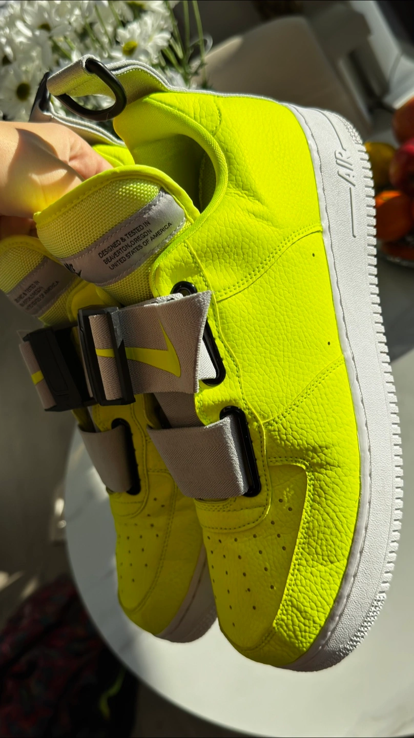 363Selling a pair of Nike Air Force 1 High Utility 2.0 in a vibrant volt colour! These shoes are designed for both style and function, perfect for adding a pop of colour to your outfit while providing great support and durability. They have a unique strap design and are in excellent condition, ready for a new home!